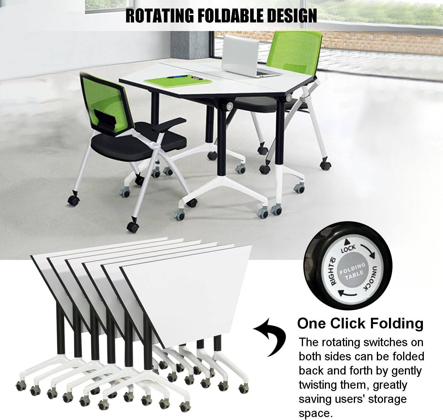 Modern Minimalist Style: Our folding conference table adopts a classic black and white color scheme, with a stylish and minimalist appearance that can also better adapt to various modern decoration styles. Combined with a unique trapezoidal shape design, bold experimentation and innovation can be made to create different combinations, adding a unique aesthetic appeal to your office space.