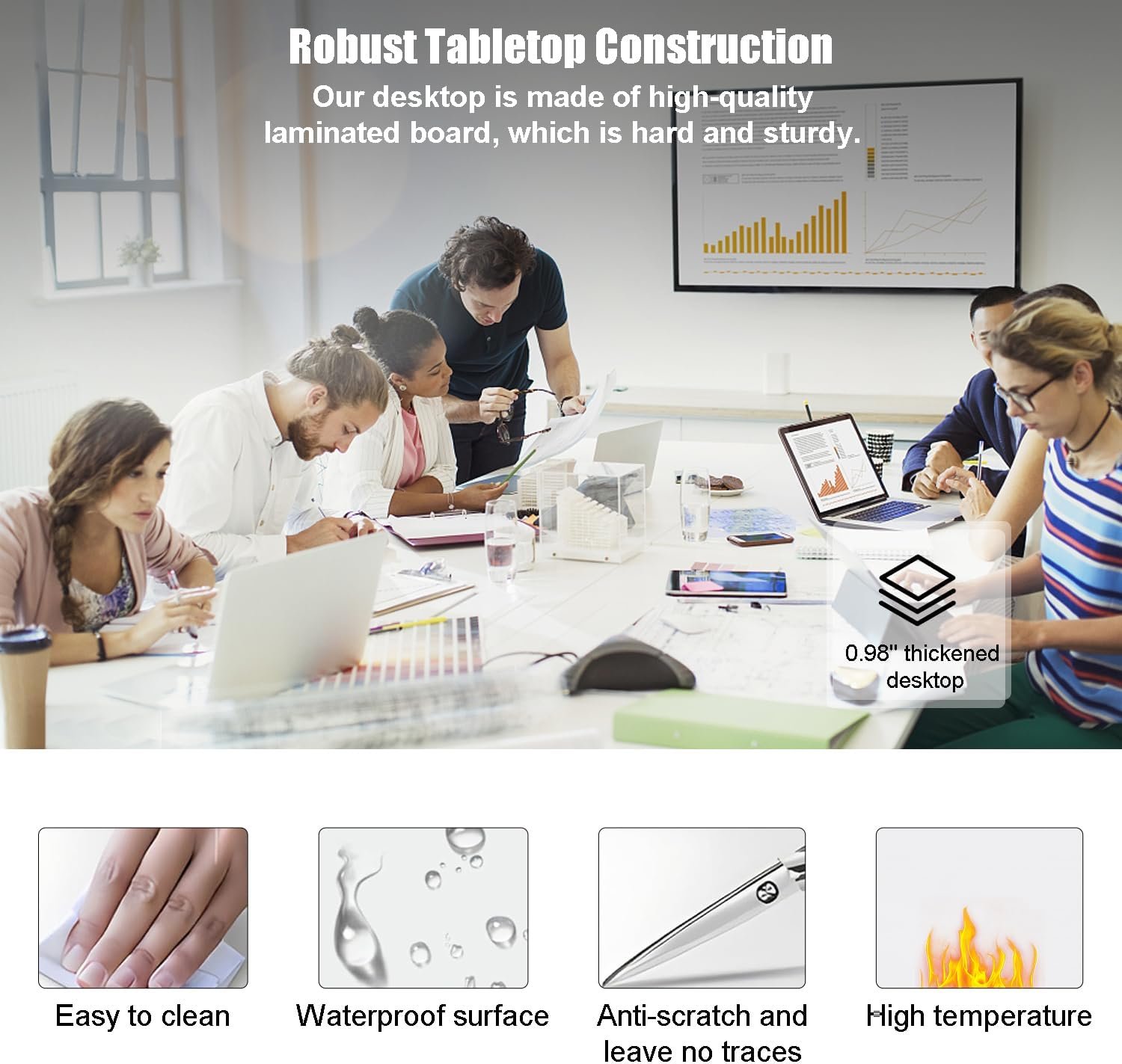 360 ° Universal Wheels: Each conference meeting table is equipped with four caster wheels that can rotate 360 ° in all directions. The wheels are noiseless, move smoothly, and do not damage the floor, allowing you to easily move the tables to wherever you want to place it. Compared to ordinary fixed wooden tables, our modular table has stronger flexibility and convenience. And each wheel comes with a brake device, which will firmly fix the office table in the position you want to place.