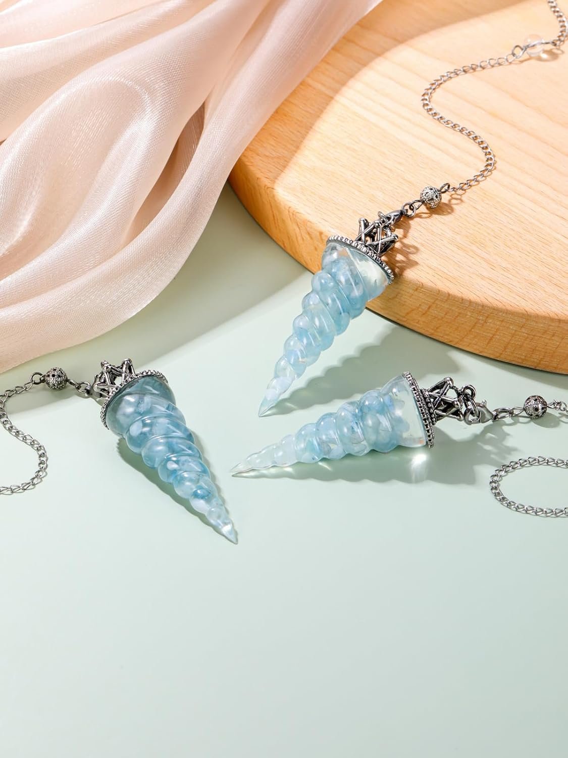 GEHECRST Aquamarine Healing Crystal Pendulum for Divination Dowsing Natural Quartz Crystal Pointed Resin Pendulum Crystal Spiritual Gemstone Pendant for Witchcraft Reiki Positive Energy