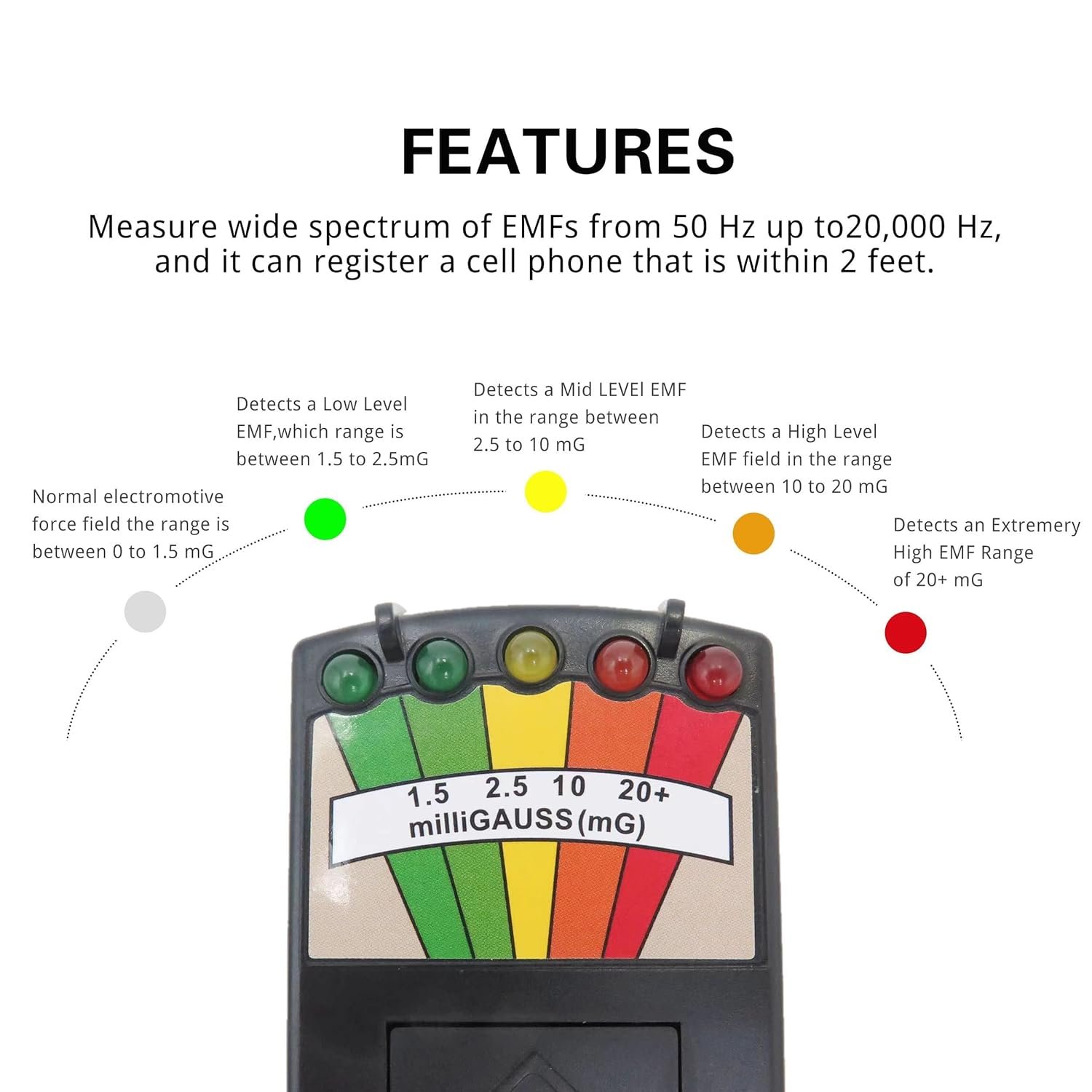 【Widely Applications】 The emf meter ghost hunting helps measure electromagnetic fields to identify devices that produce high levels of radiation and enables users to determine the extent to which to limit exposure. Emf tester meter is mainly used for testing TV, computer, microwave oven, refrigerator, printers, cell towers, low-frequency home appliances, ghost hunting, etc.