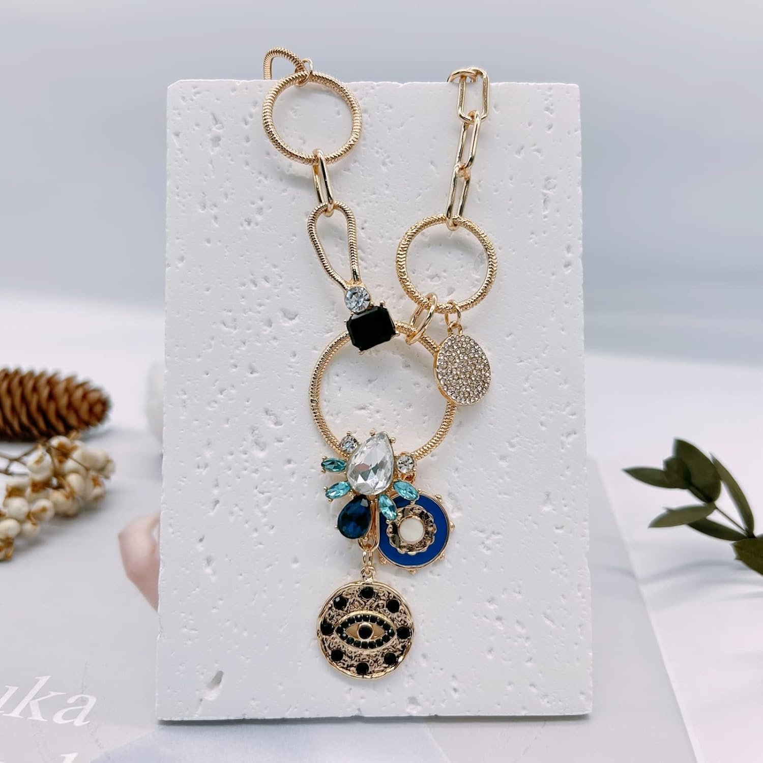 Customers find the necklace visually appealing, with one noting how the stones don’t look cheap, and appreciate its value for money, describing it as looking and feeling expensive. Moreover, they consider it a great statement piece, not very heavy, and fun to wear, with one mentioning it’s perfect for both casual outings and special events. However, the length receives mixed feedback, with some finding it quite large. Additionally, durability is a concern as several customers report it breaking after wearing it once.