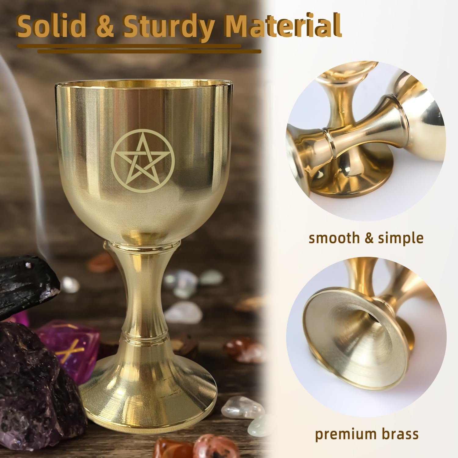 The Tirmanaz goblet is made of solid brass, sturdy enough and its surface is smooth and glossy, comfortable to touch, total 3.1 inch tall, is compact and portable to carry, great for witch, divination, wiccan, magic, ceremony, ritual, spiritual tools, witchcraft, etc. This will be a ideal gift for your friends and family who are interested goblet.