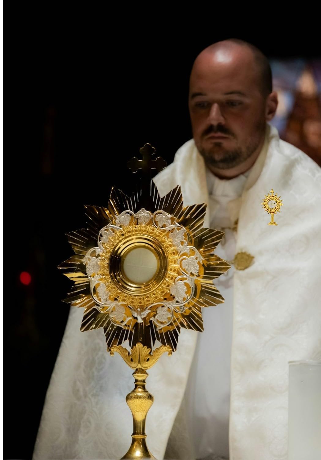 – (1) Gold-tone Monstrance Pin