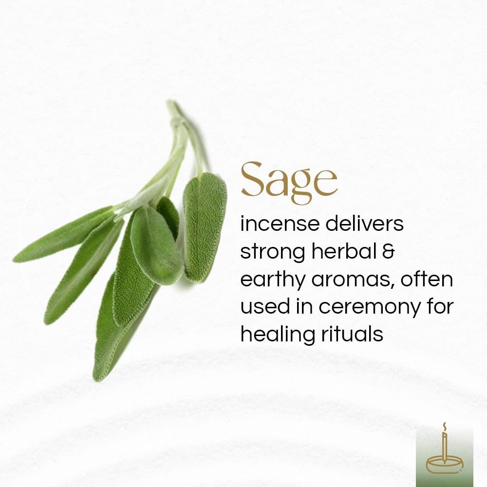 Sage incense delivers strong herbal & earthy aromas, often used in ceremony for healing rituals