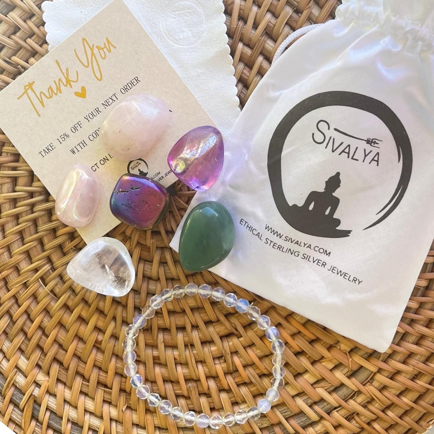 Clear Quartz Energy Bracelet Included – Amplify your intentions with the included Clear Quartz bracelet, designed to enhance the energy of the stones and provide wearable positivity throughout the day.
