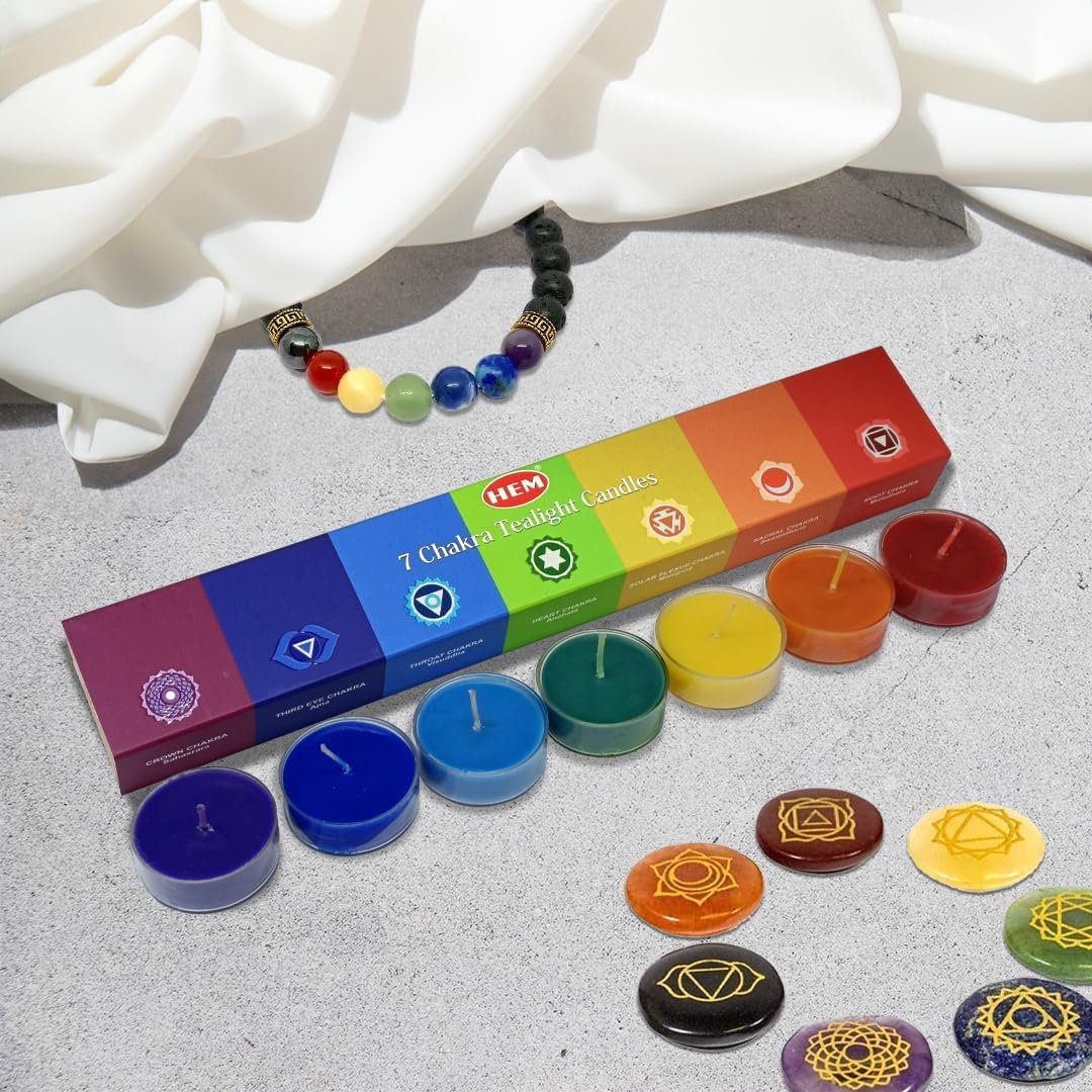 Hem 7 Chakra Tealight Candles – Hand-Poured Scented Candles for Chakra Healing &…