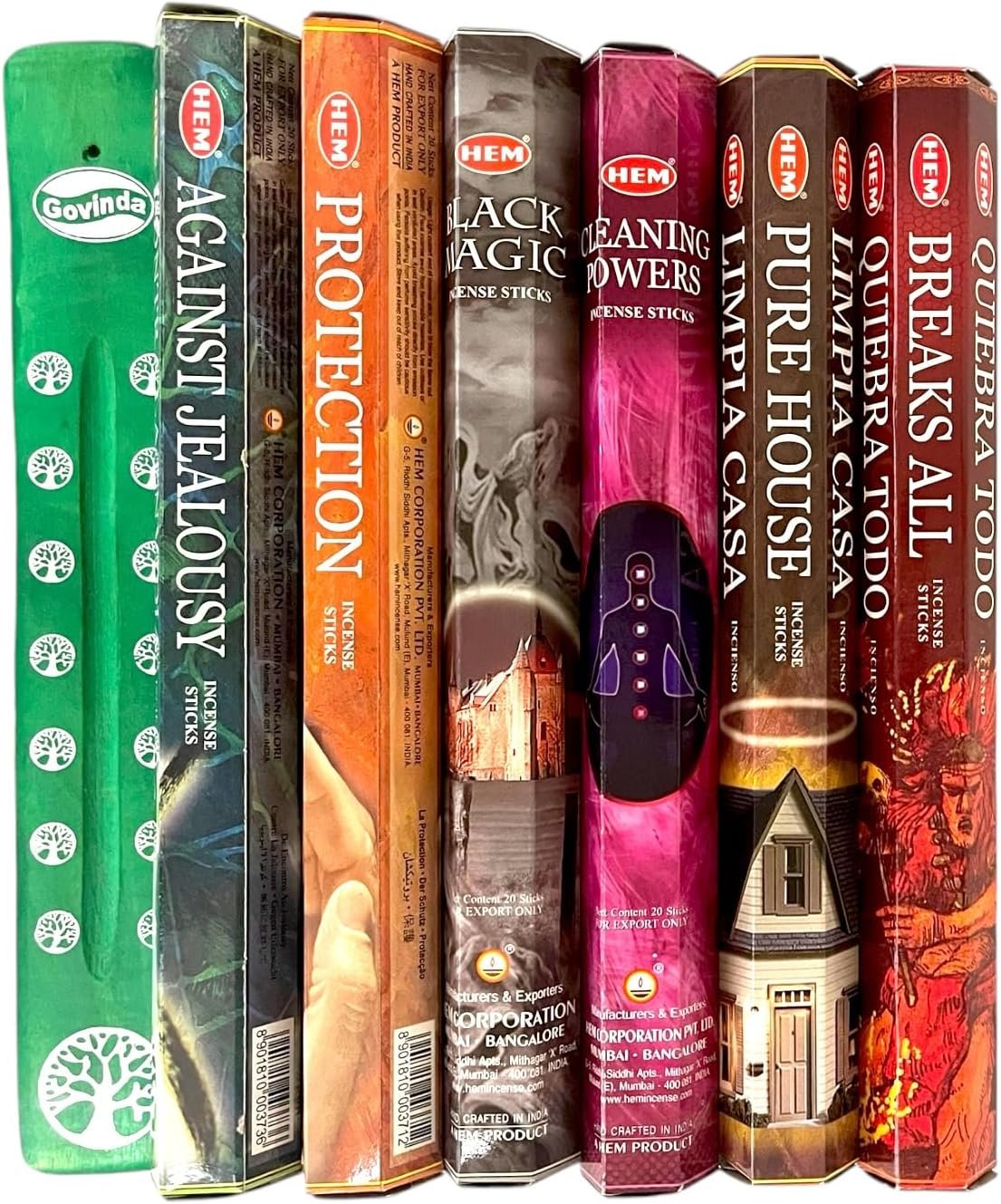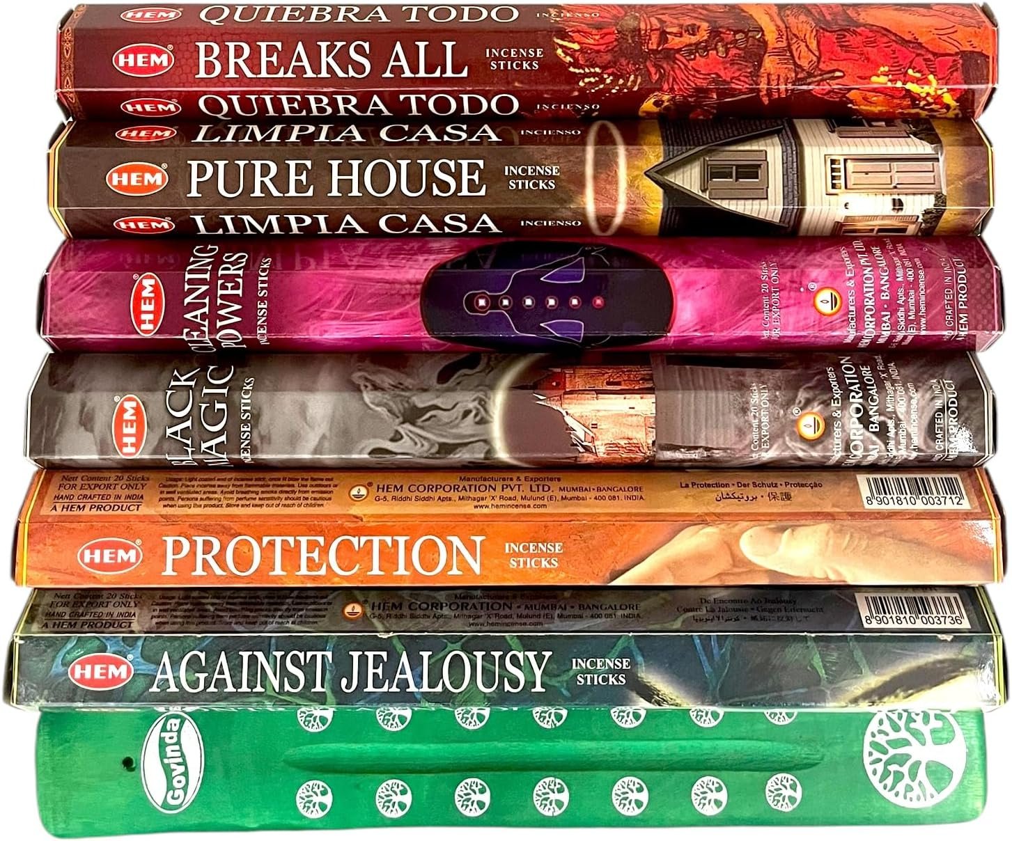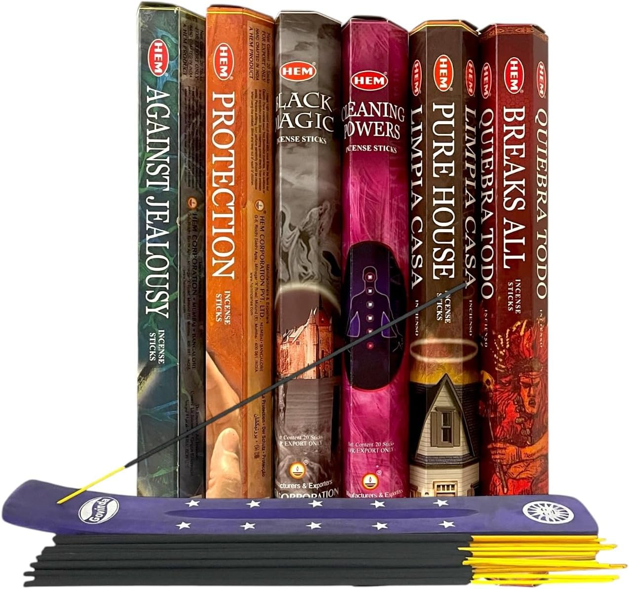 Incense sticks variety pack includes Black Magic | Break All | Go Away Evil | Protection | Against Jealousy | Pure House fragrances.