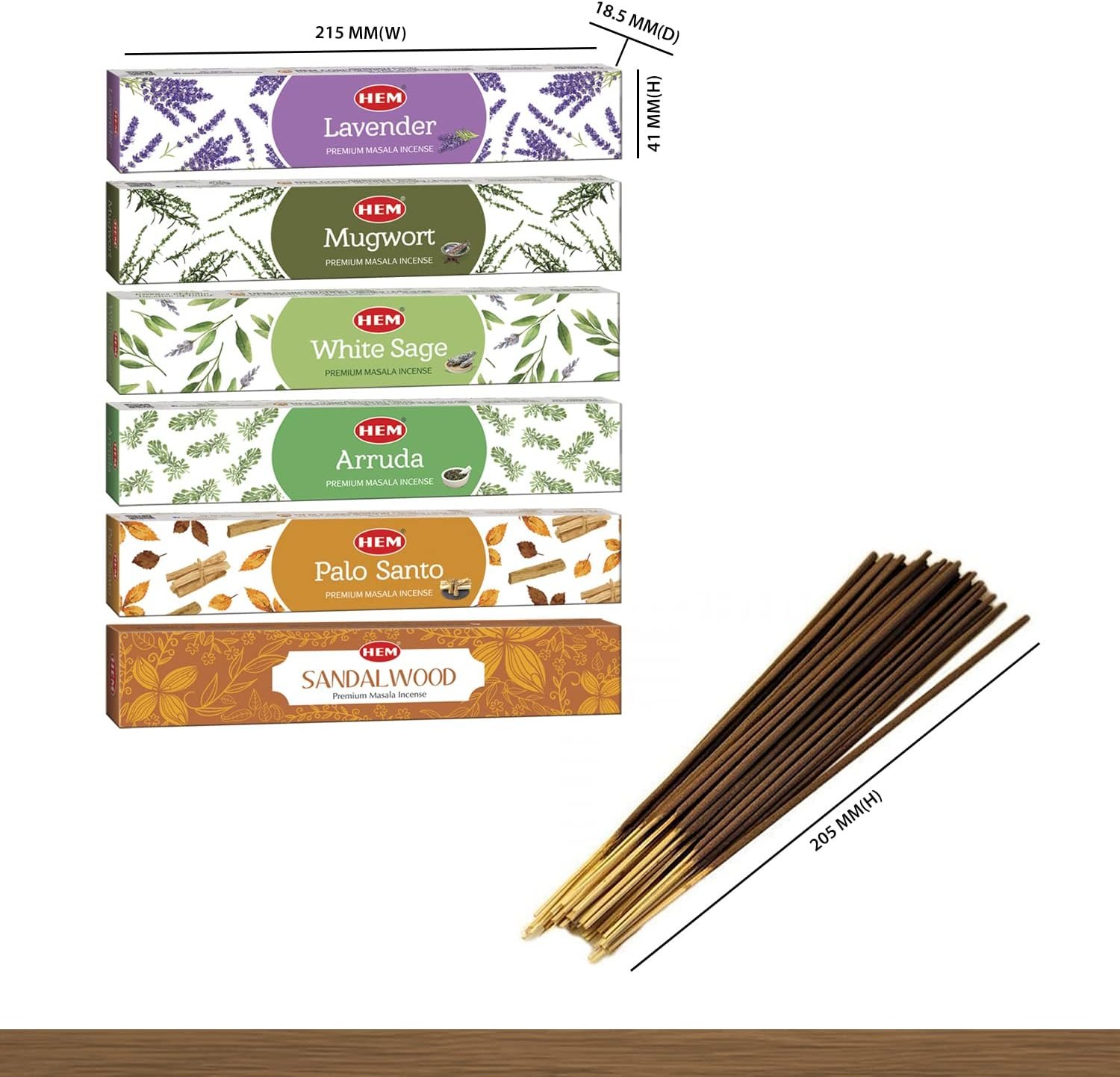 Our Masala Assorted Incense Sticks deliver fragrances for a peaceful ambience Usage: Place in any convenient location away from sources of inflammation. Place the lit incense cone in the incense holder. Storage: Store away from inflammable areas BOX CONTAINS 6 HEXAGONAL TUBES: 20 sticks per tube with a burning time of 30 minutes per stick Our products are made to suit all environments that inspire wellness, peace, and harmony in everyday lives of people.