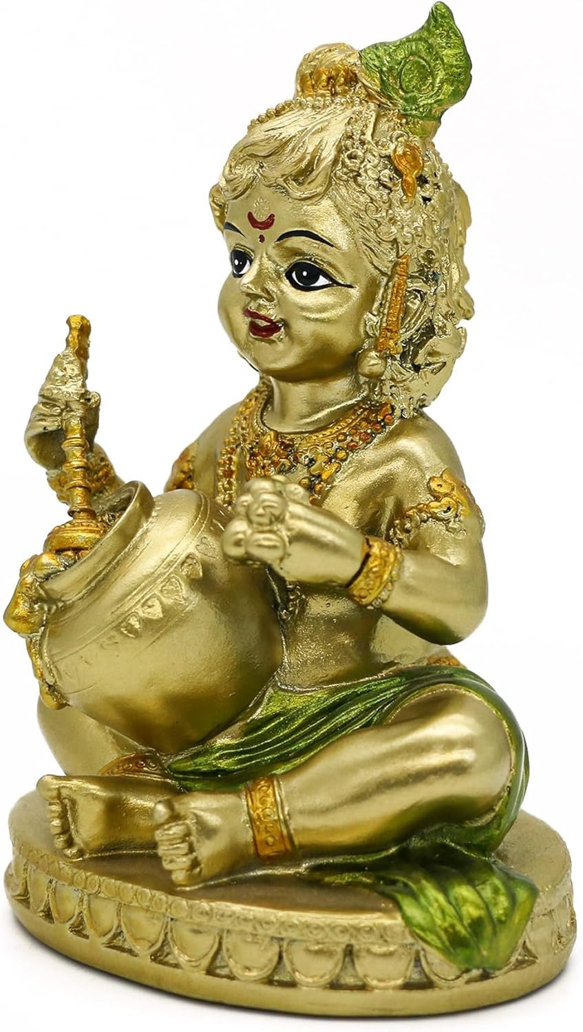 Hand-painted by skilled Indian artists: Each Hindu God Lord Baby Krishna Statue is carefully crafted and painted by hand, ensuring that each piece is unique and of the highest quality. This makes it a great addition to any collection of Hindu art and a perfect spiritual decoration for home/office/Altar/Shrine/Yoga studio/meditation room etc.