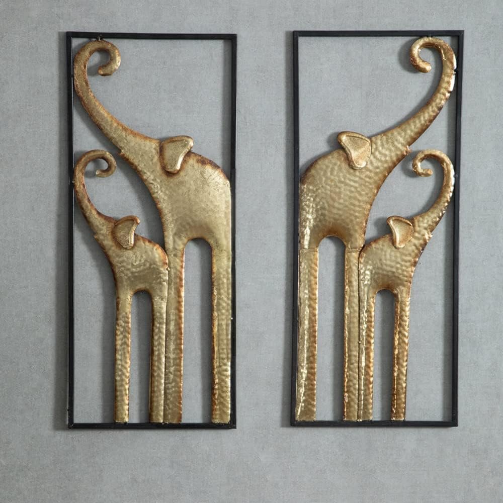 HKaikzo Set of 2 Elephant Wall Decor, African Wall Decor, Gold Elephant Wall Art…