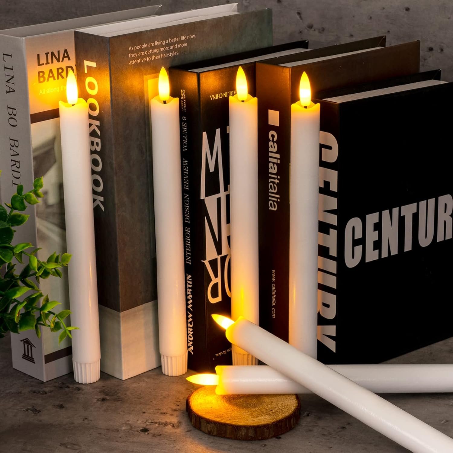 Homemory 9.6 inches 3D Flame Real Wax Flameless Taper Candles with Remote & Timer & Dimmer