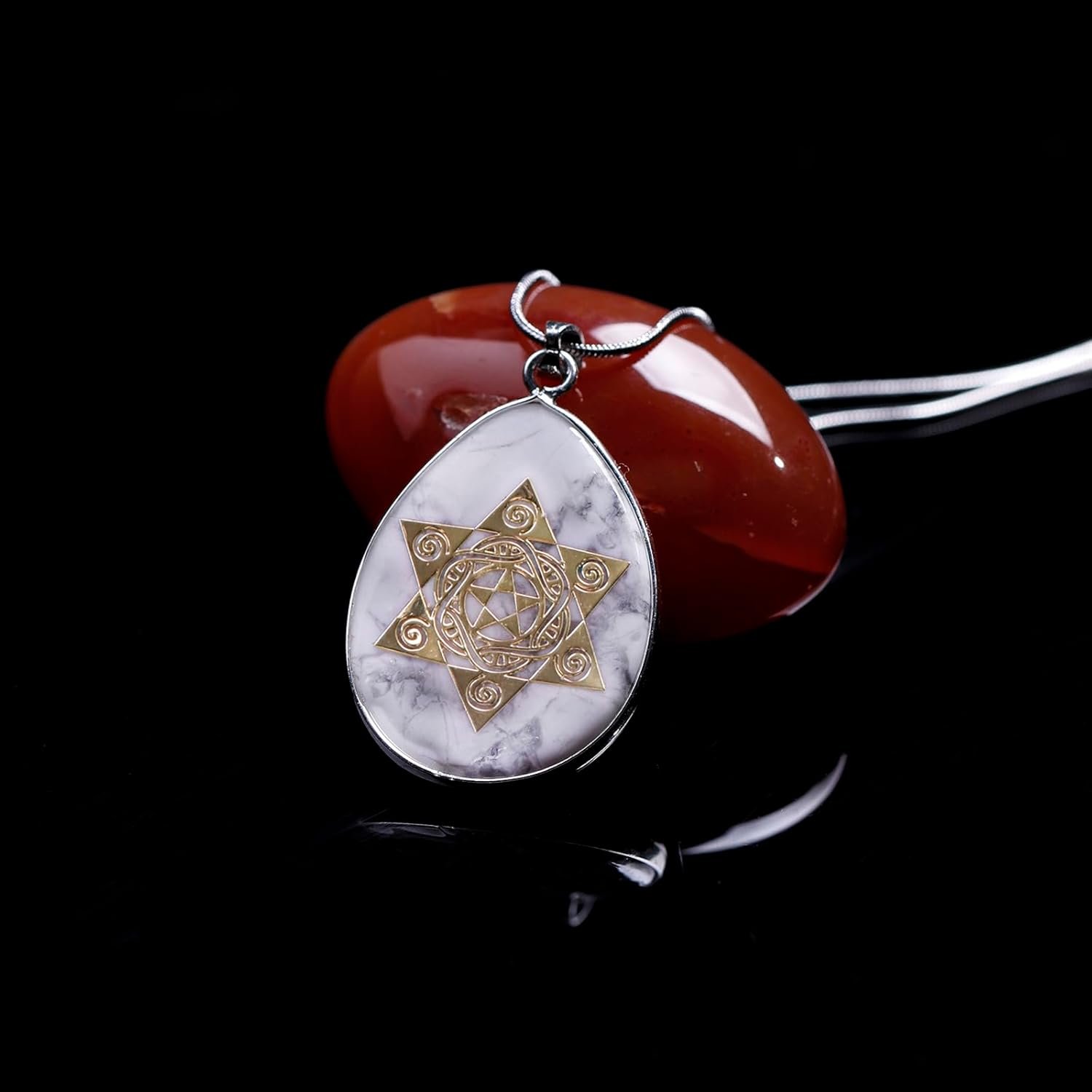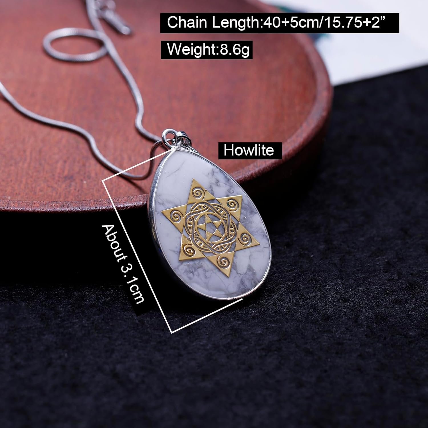 Howlite Waterdrop Pendant Necklace With Hexagram Symbol, Natural Stone Energy Je…