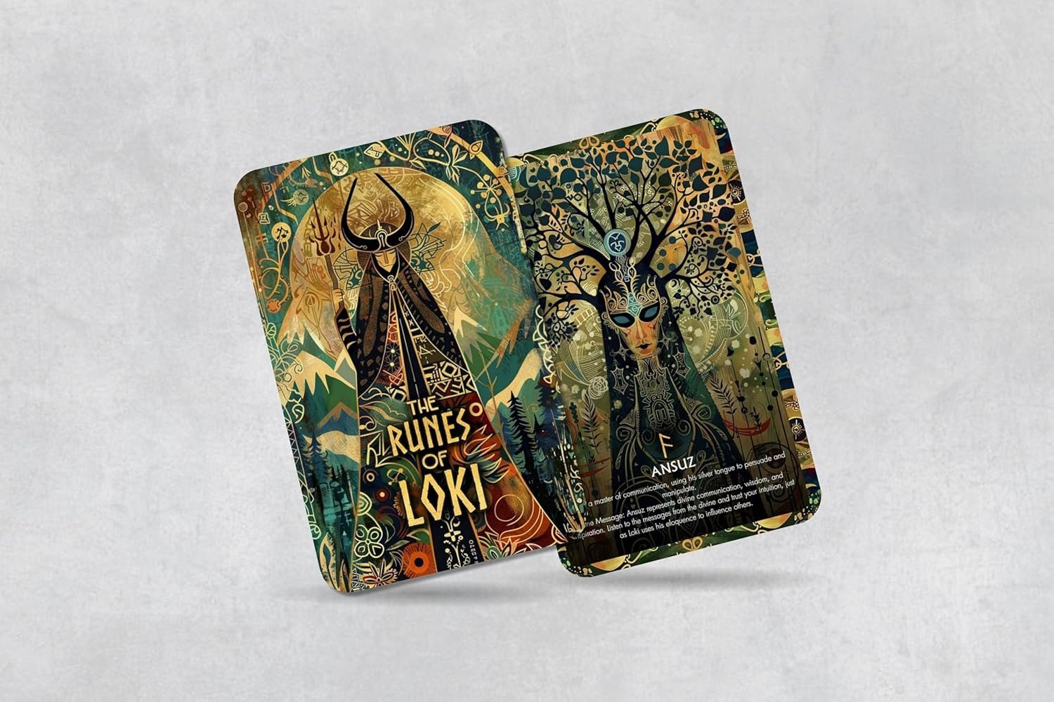 Discover the mystical world of Norse runes with our unique deck, inspired by the legendary trickster god, Loki. Each card in this deck combines the ancient power of runes with Loki’s cunning, adaptability, and transformative energy.