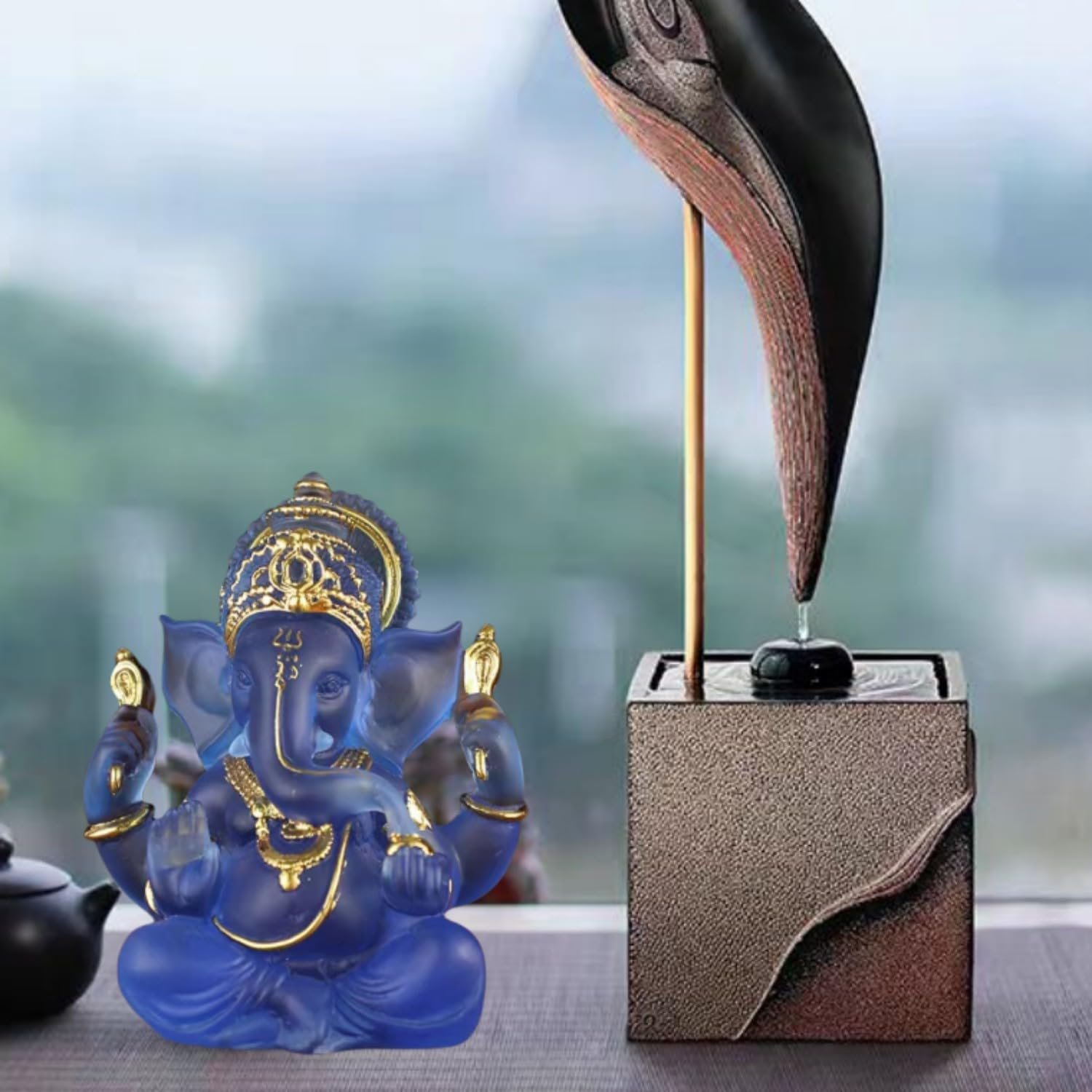 Indian God Lord Ganesha Statue,Blue Lmitation Glass Hindu Elephant Statue Ganpat…