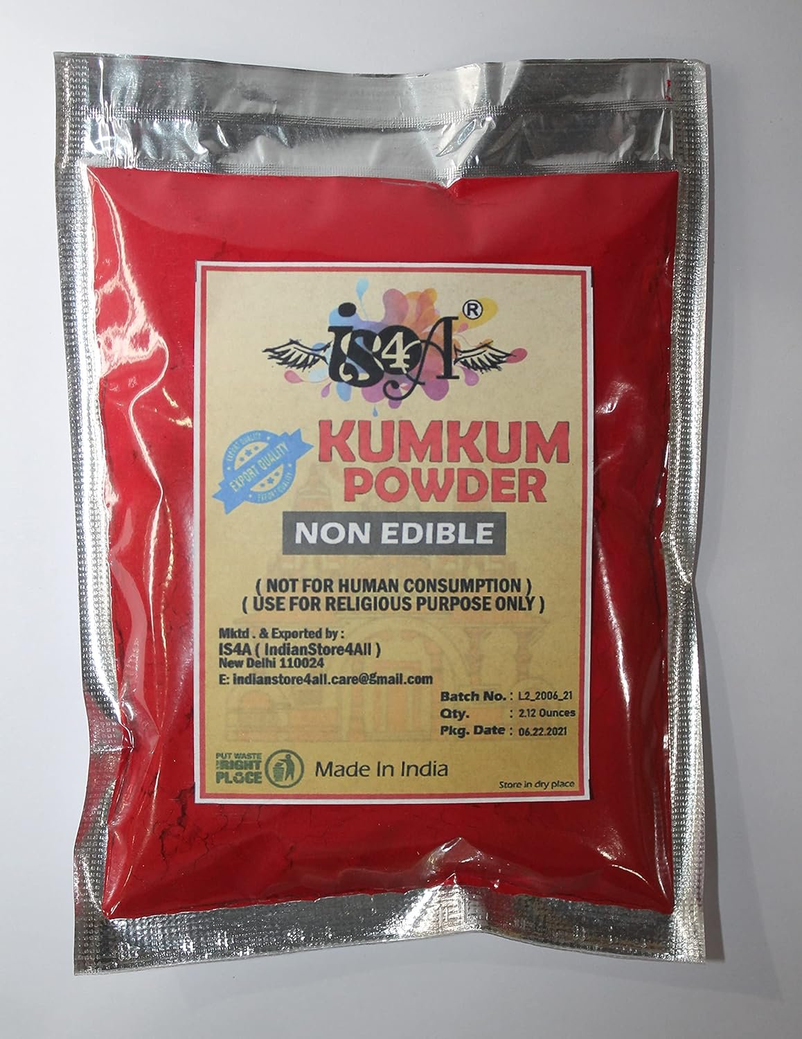 IS4A Pure Indian Dark Red kumkum Powder (Sindoor, kumkuma, Kum Kum) For Pooja, M…