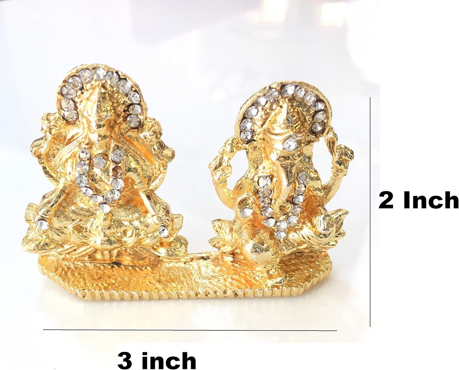 Place the Itiha Golden Metal Lakshmi Ganesh Golden Idol in your puja room to elevate its look. This idol depicts Lord Ganesha and Goddess Lakshmi sitting on a sturdy base. The golden finish of this idol gives it a charming look. This idol is made of metal and coated with gold color and measures 2.5 x 1 x 2 inches in size.