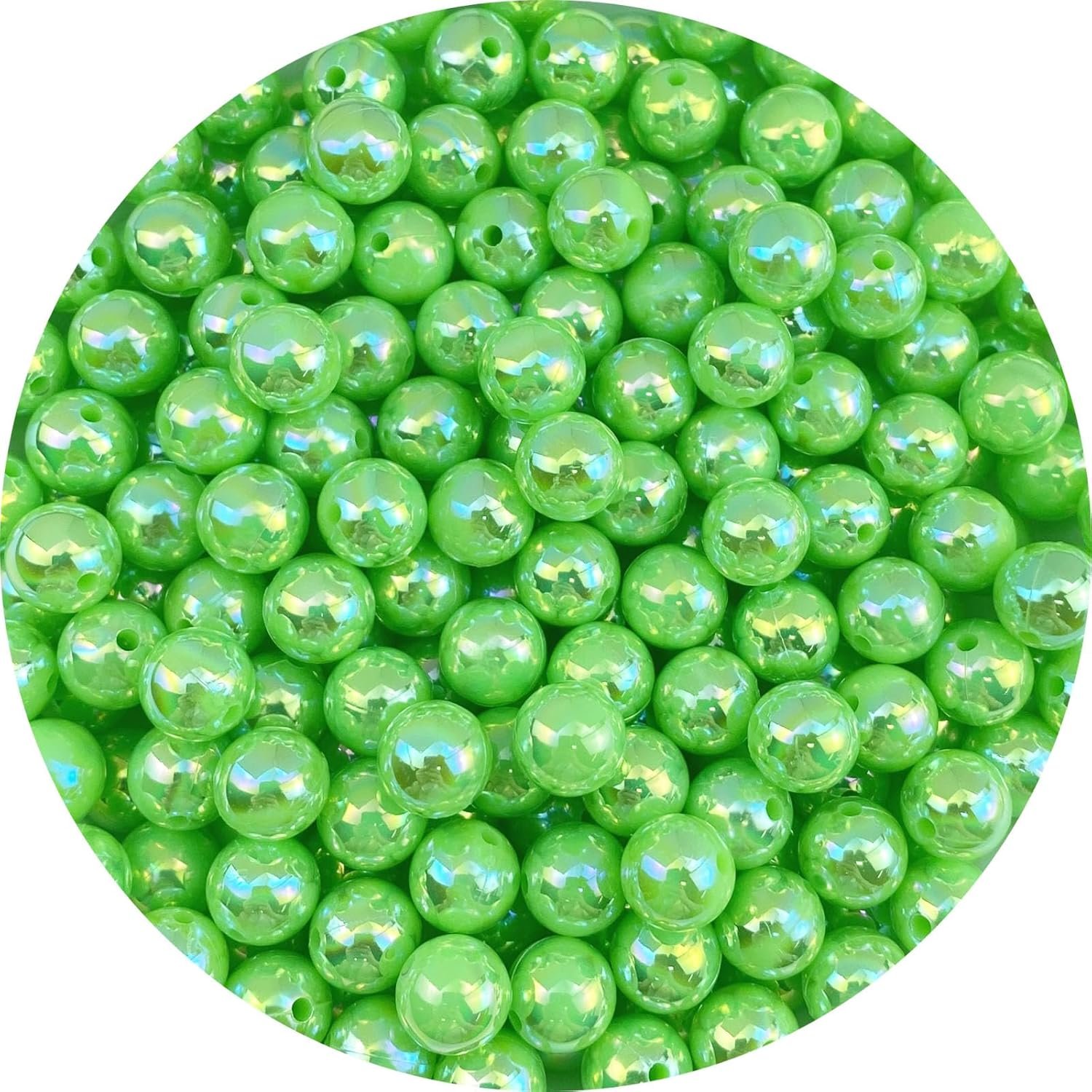Size and Color: Size: 6mm. Hole: 1.8mm. Color: Bright Green AB. There are different sizes and colors round beads available, with vivid colors and smooth surfaces.