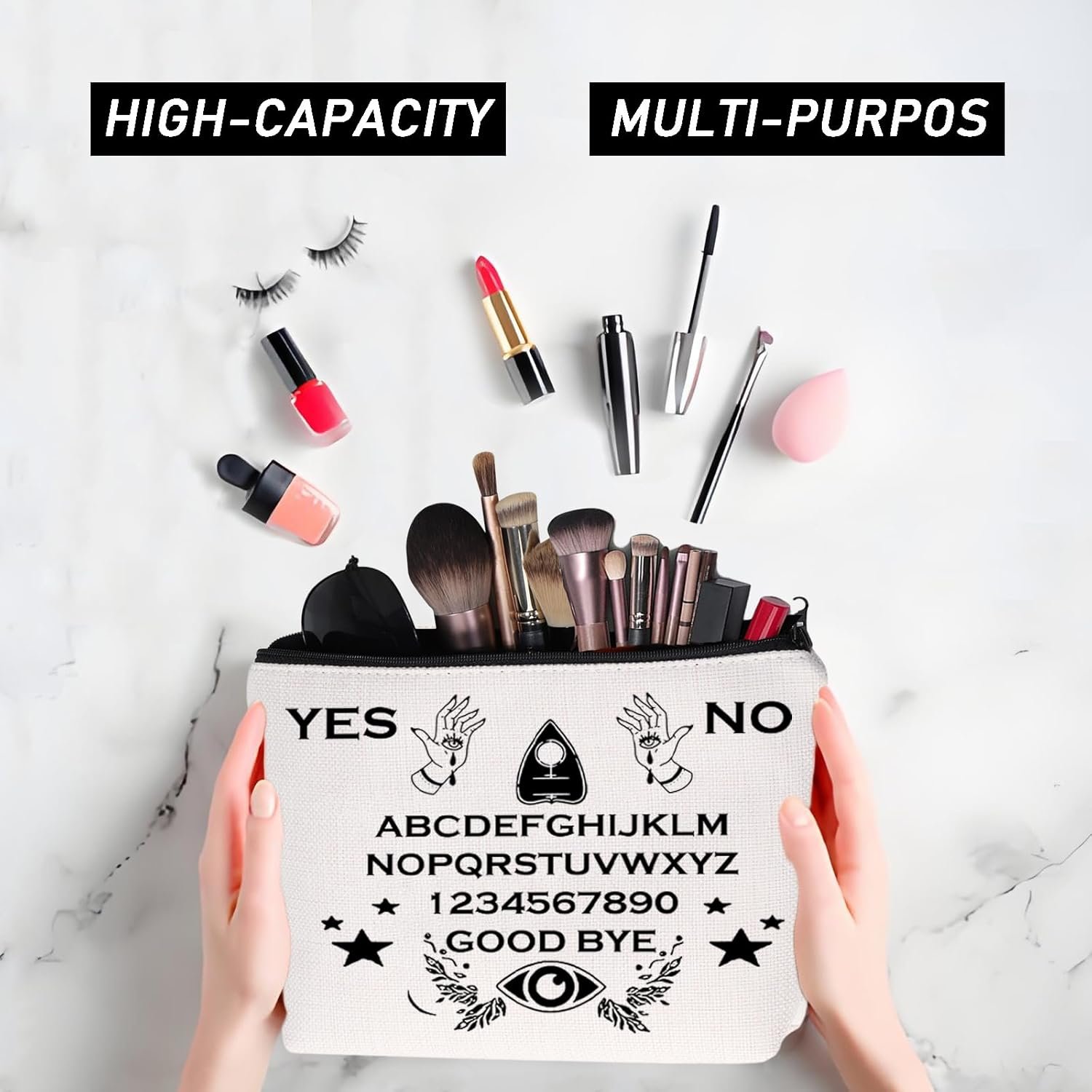 JYTAPP Makeup Bag Board Planchette Canvas Cosmetic Bag Spirit Board Art Zipper P…