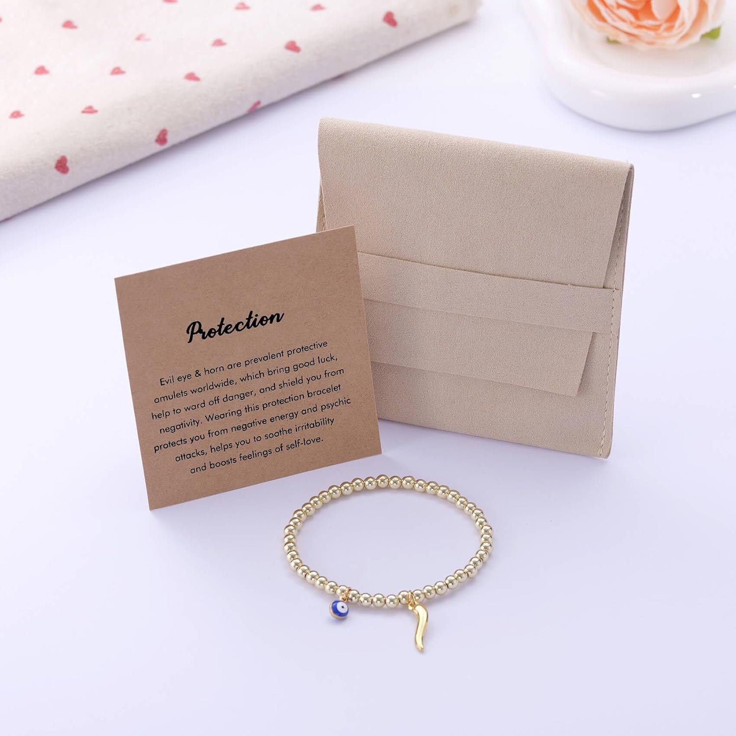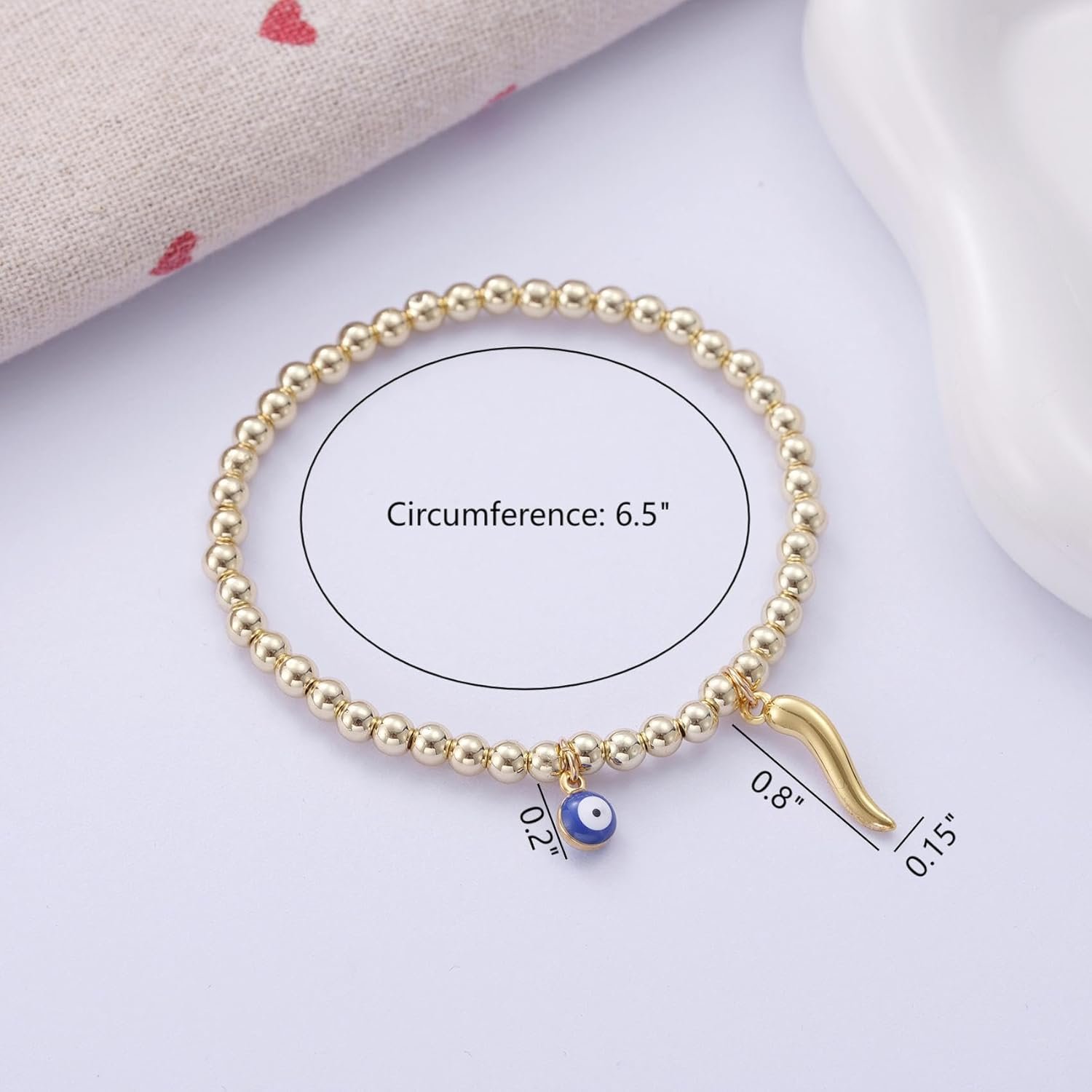 Experience the power of ancient protection with our Gold Beaded Evil Eye & Horn Charm Bracelet – a stunning spiritual accessory designed to bring harmony, safety, and confidence into your life. The bracelet features the Evil Eye symbol, long believed to deflect harmful intentions and negative energy, paired with the Italian Horn (Cornicello), traditionally worn to guard against the “evil eye” and attract good fortune.