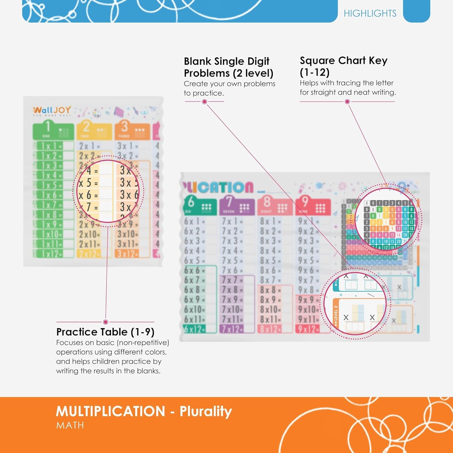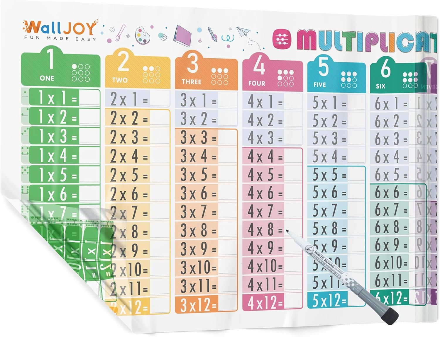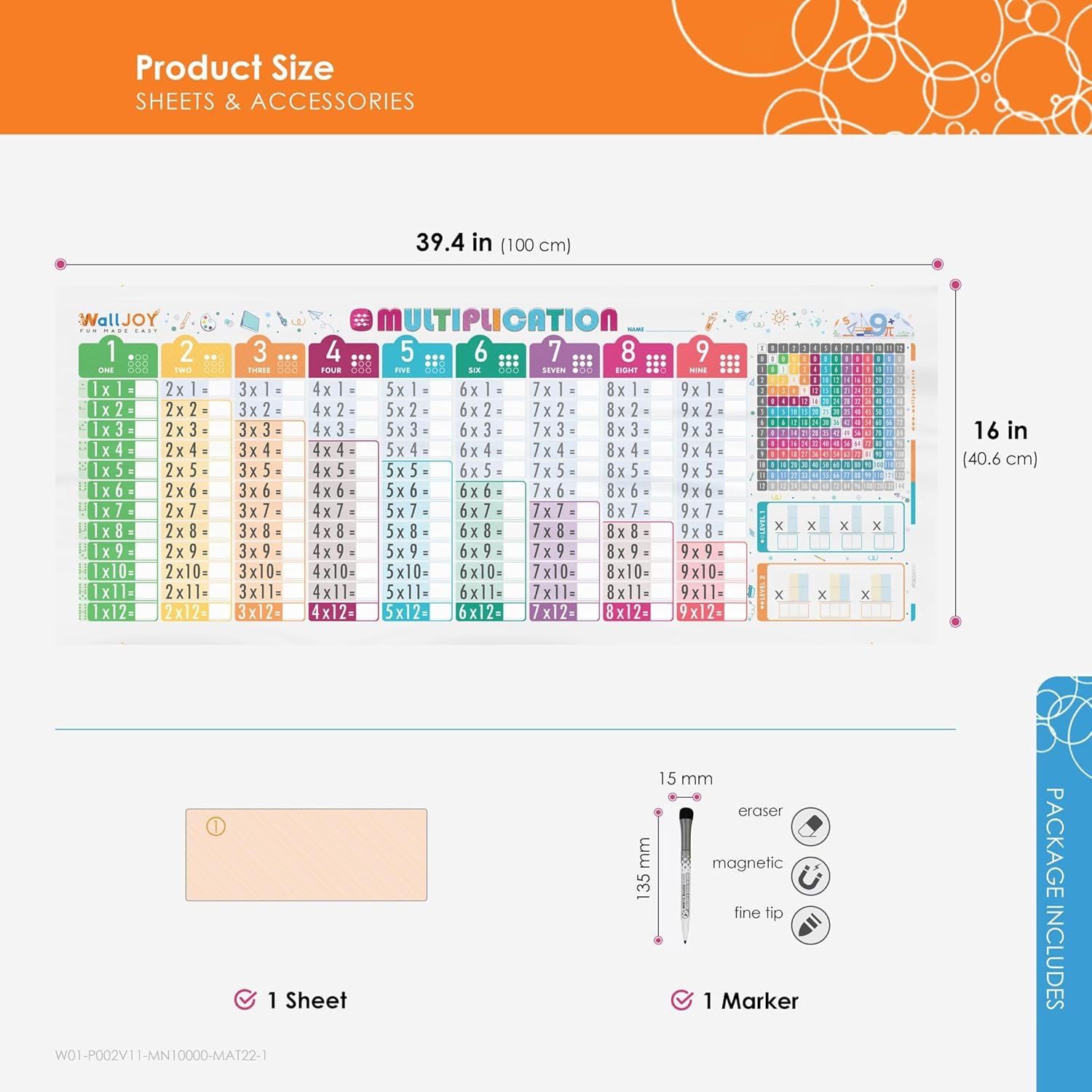 Unique Design: Bright and colorful educational dry erase color multiplication for kids captures attention and makes math fun. This multiplication table chart and multiplication board allow students to solve problems, practice multiplication facts, and check answers quickly using the provided multiplication chart poster or times table poster.