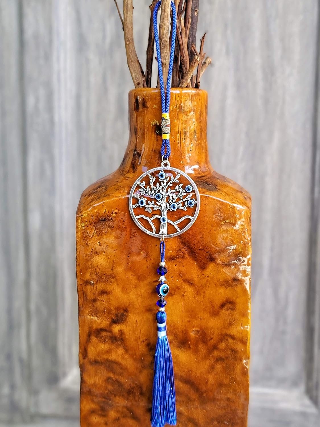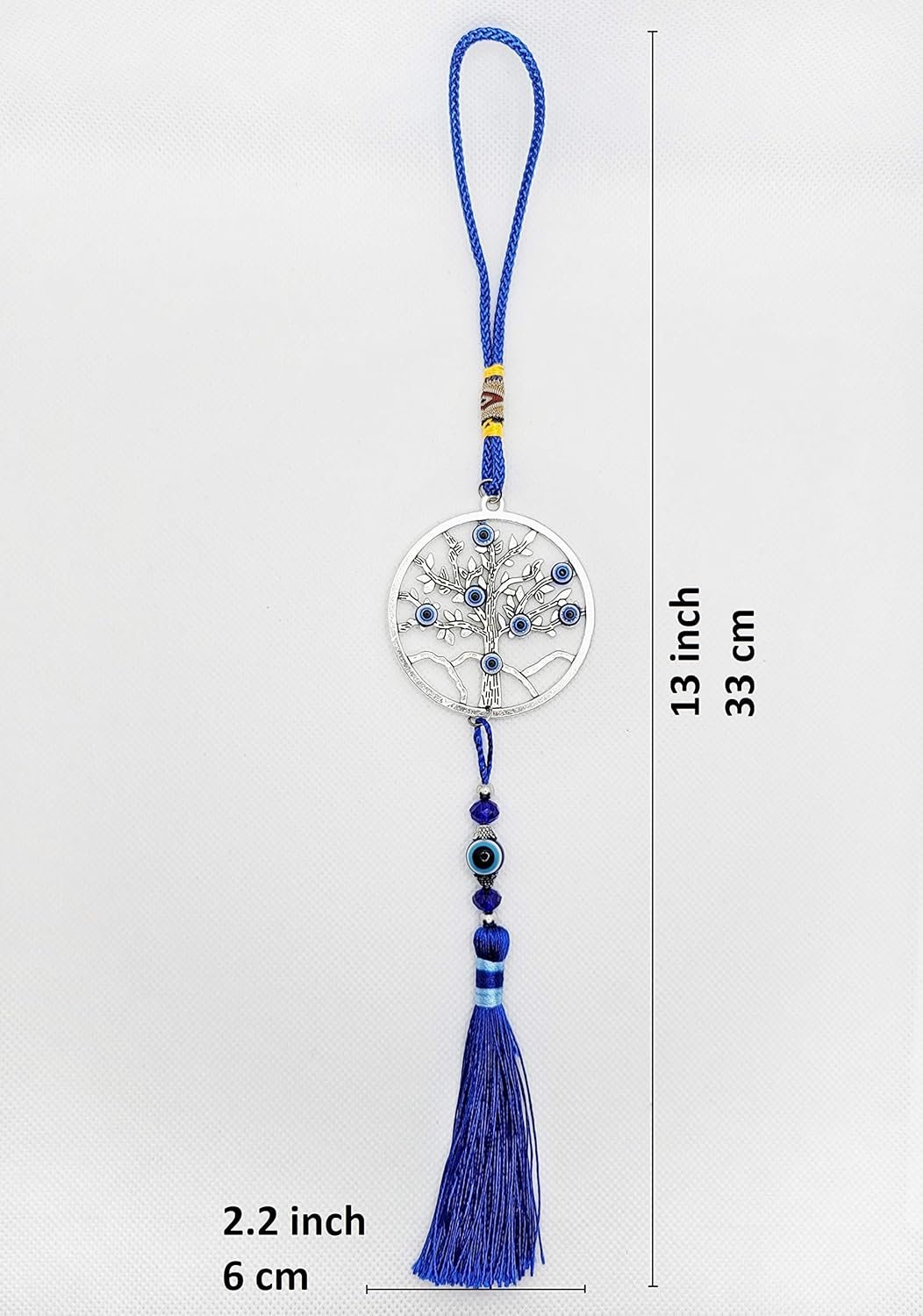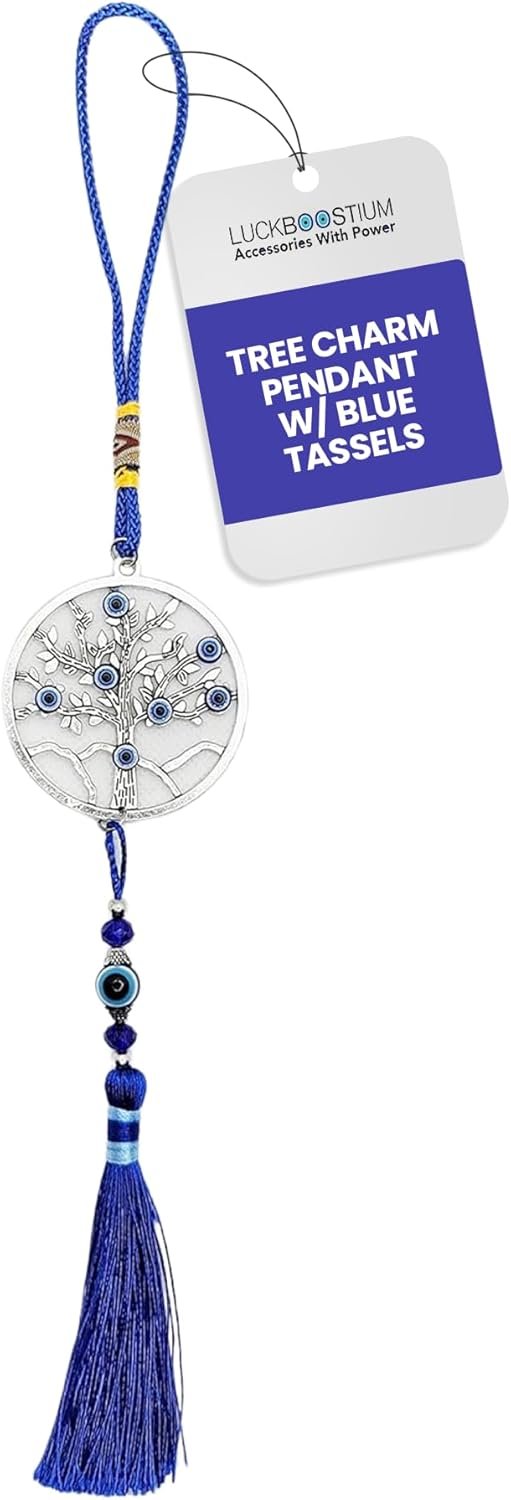 SYMBOL OF PROTECTION & GOOD FORTUNE: This LUCKBOOSTIUM Evil Eye Tree Charm Pendant represents an ancient protective symbol. With its vibrant blue tassels and tree of life design, it wards off negativity, promotes positivity, and brings good luck and energy to your space.