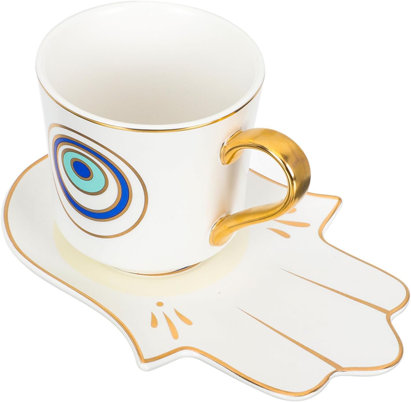 Evil Eye Coffee Cups Set: Blue Eye Mug with Ceramic Hamsa Hand Saucer Plate Dish Espresso Coffee Cups Milk Mug for Home Office Coffee House, The product is versatile, being suitable for various occasions such as home, office, cafe, restaurant