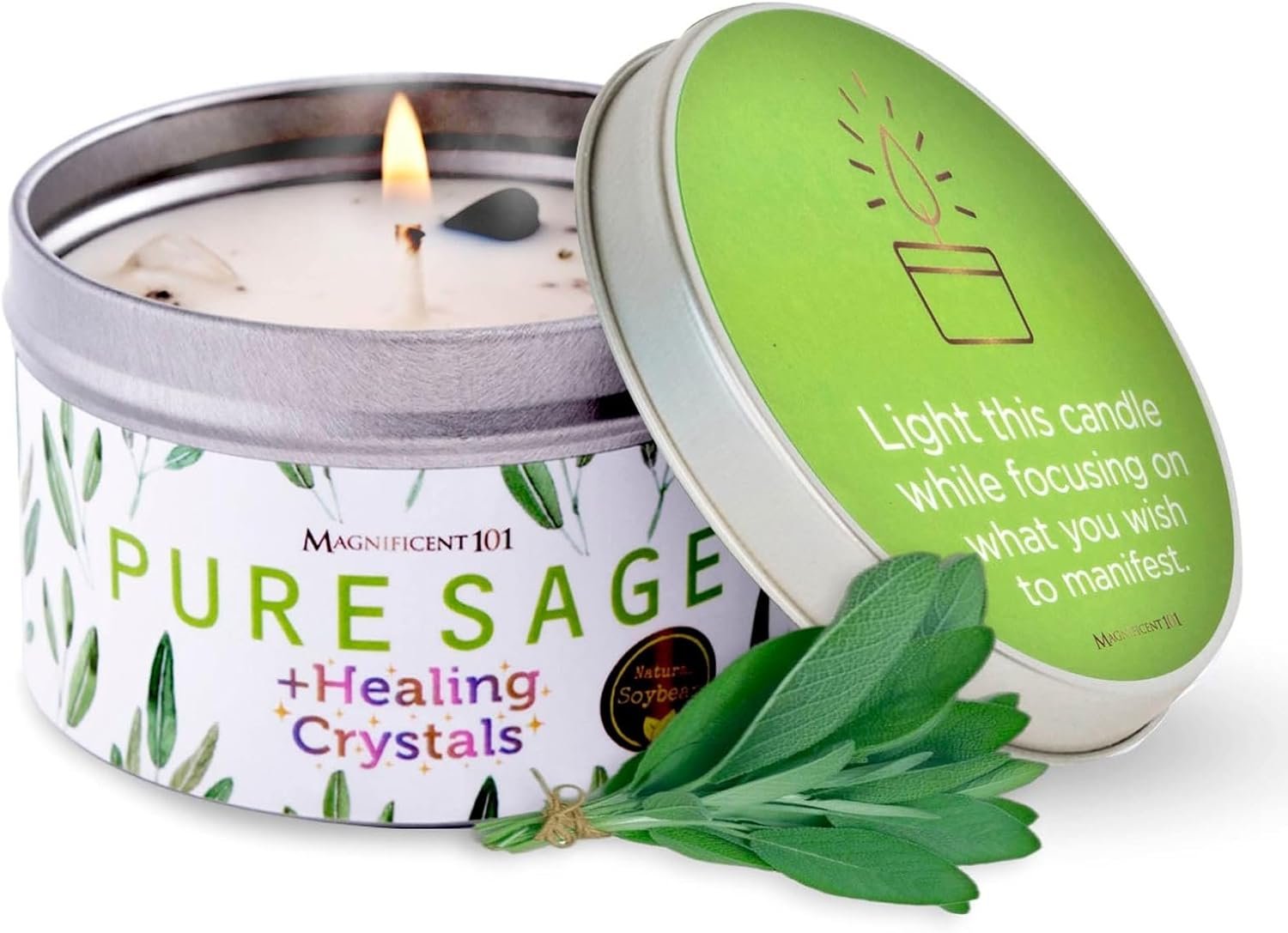 Magnificent 101 Long-Lasting Healing Crystals Candle | 6 Oz – 35-Hour Burn | All…