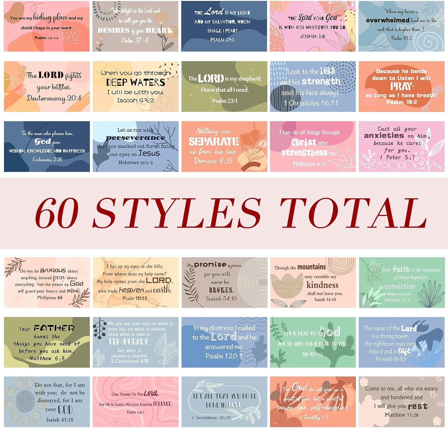 Small and Lightweight: each Christian card with scripture measures approx. 3.5 x 3.5 inches, which is the same size as a business card, small and lightweight, easy to store and carry around, and it can also be stored in an envelope or clipped in a book