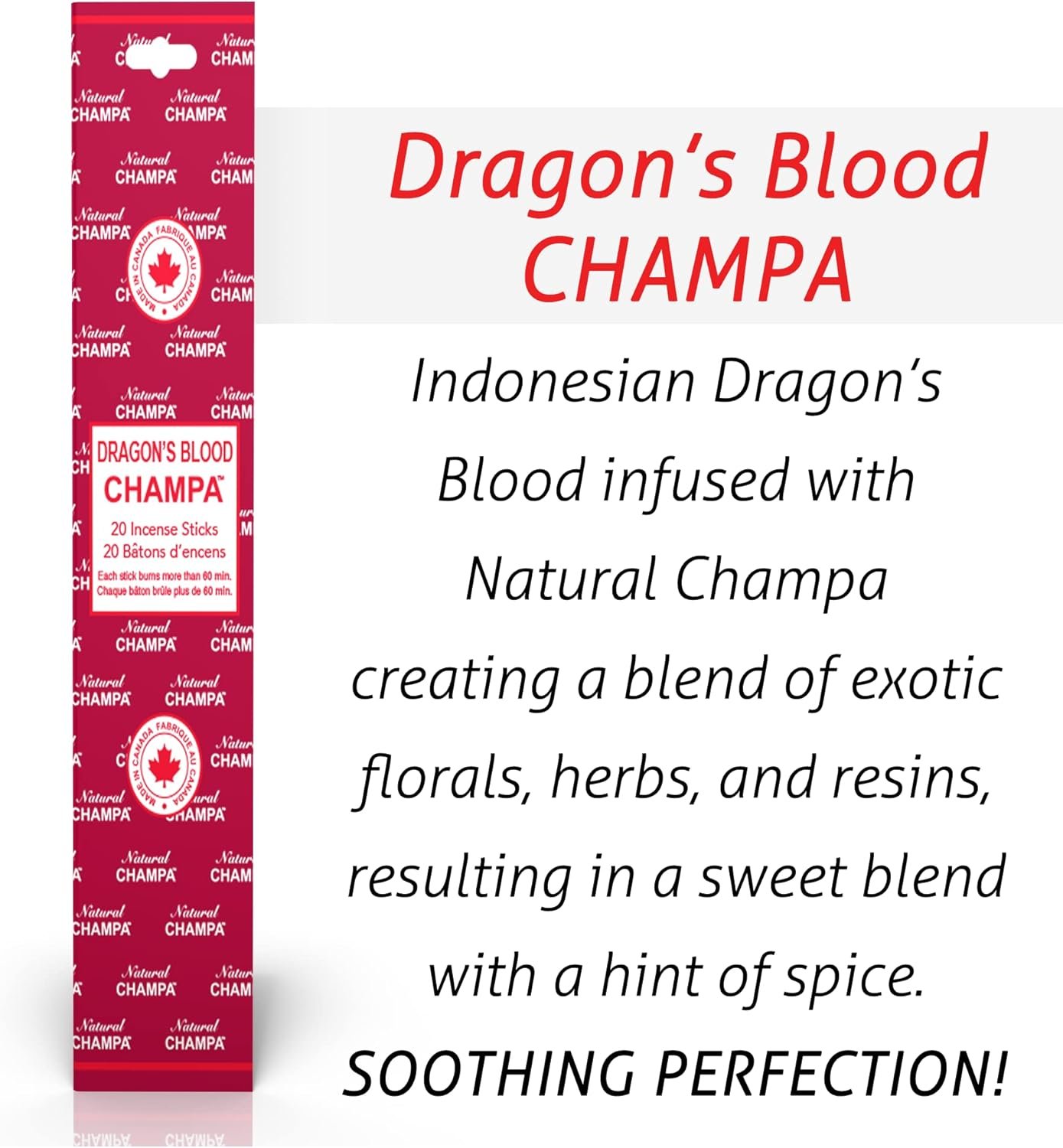 3. DRAGON’S BLOOD CHAMPA (Red): Indonesian Dragon’s Blood infused with Natural Champa creating a blend of exotic florals, herbs, and resins, resulting in a sweet blend with a hint of spice. SOOTHING PERFECTION!
