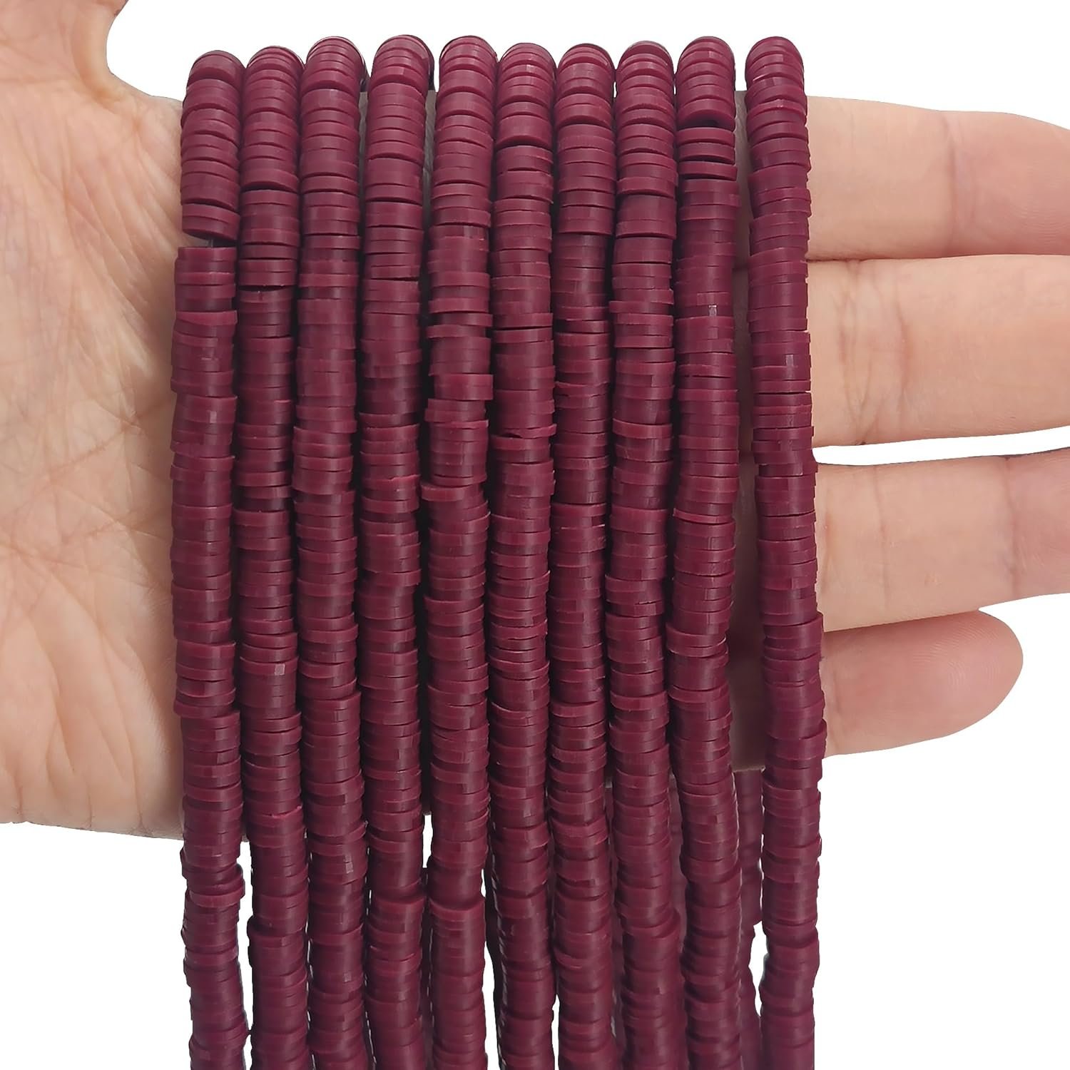 Package Contains: 10 strands of clay heishi beads for jewelry making, each string has about 360 pieces clay beads. The bracelet making beads are sized 6 mm in diameter, 2 mm in hole diameter. Enough quantities to creat 50 pcs bracelets.