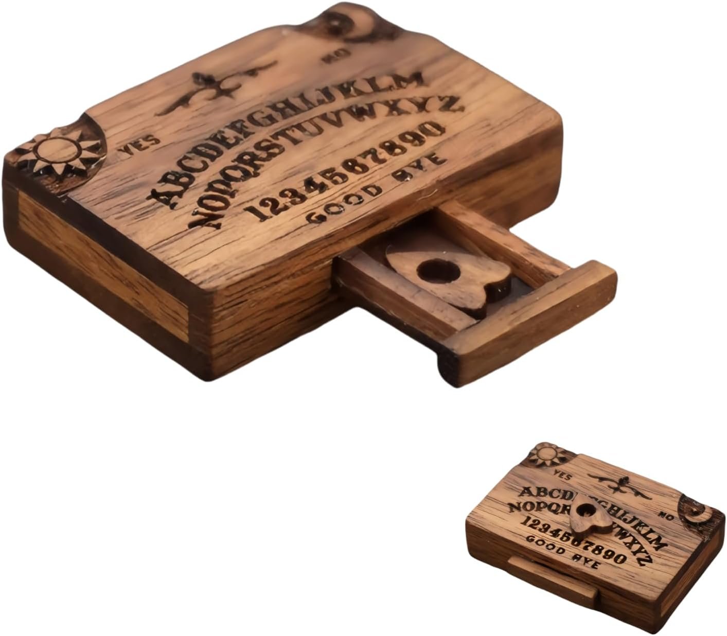 Miniature Spirit Board with Drawer – Wooden Spirit Board Set with Planchettes, U…