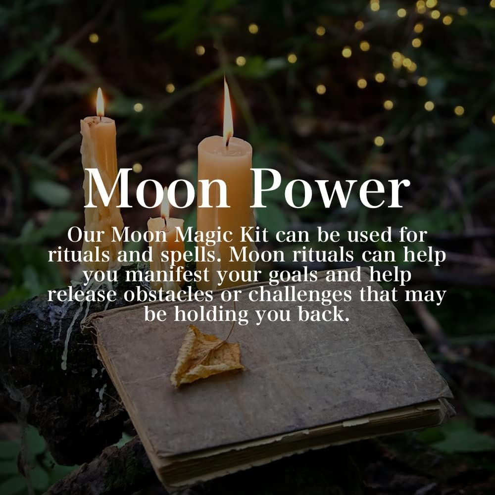 MOON ENERGY – Our Moon Spell Kit includes a number of moon related herbs and oils that are commonly associated with the moon. For use in Moon related rituals and spiritual practices.