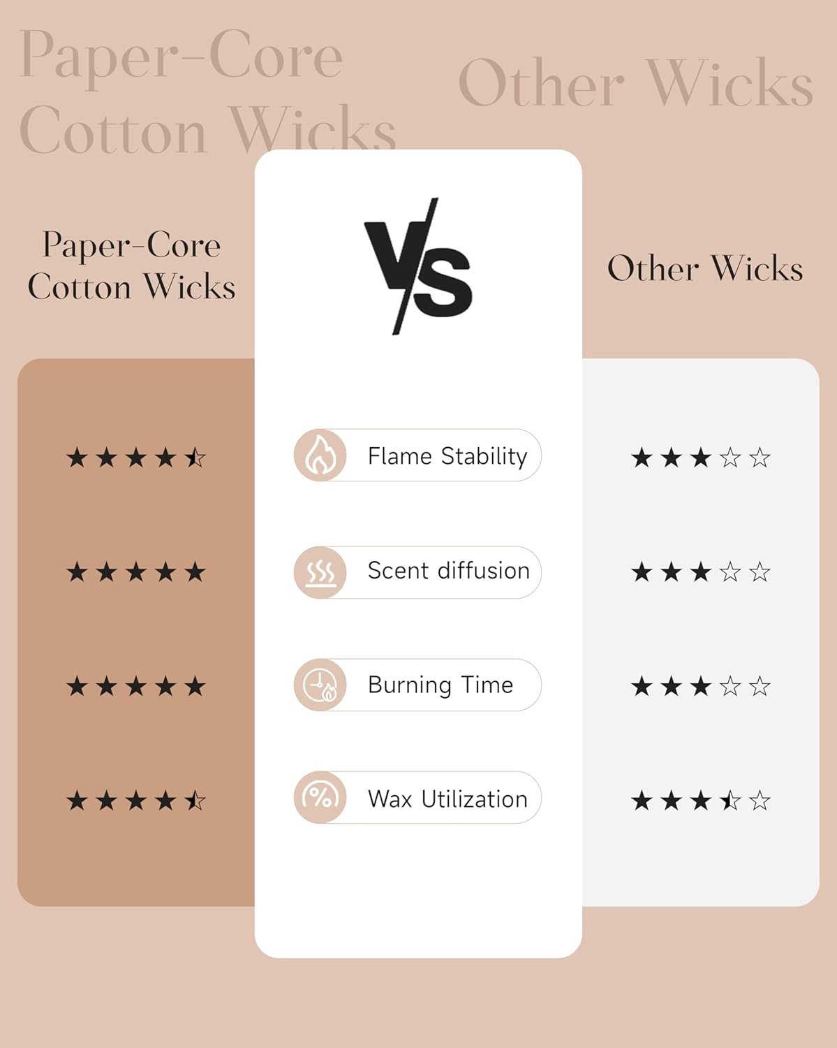 Clean Consistent & Even Burn – Using 2 American made lead-free cotton wicks for a even burn result. They’re cotton flat braid wicks with paper throughout, providing increased rigidity and burn more consistently than 100% cotton wicks. Designed to reduce carbon buildup which leads to black soot