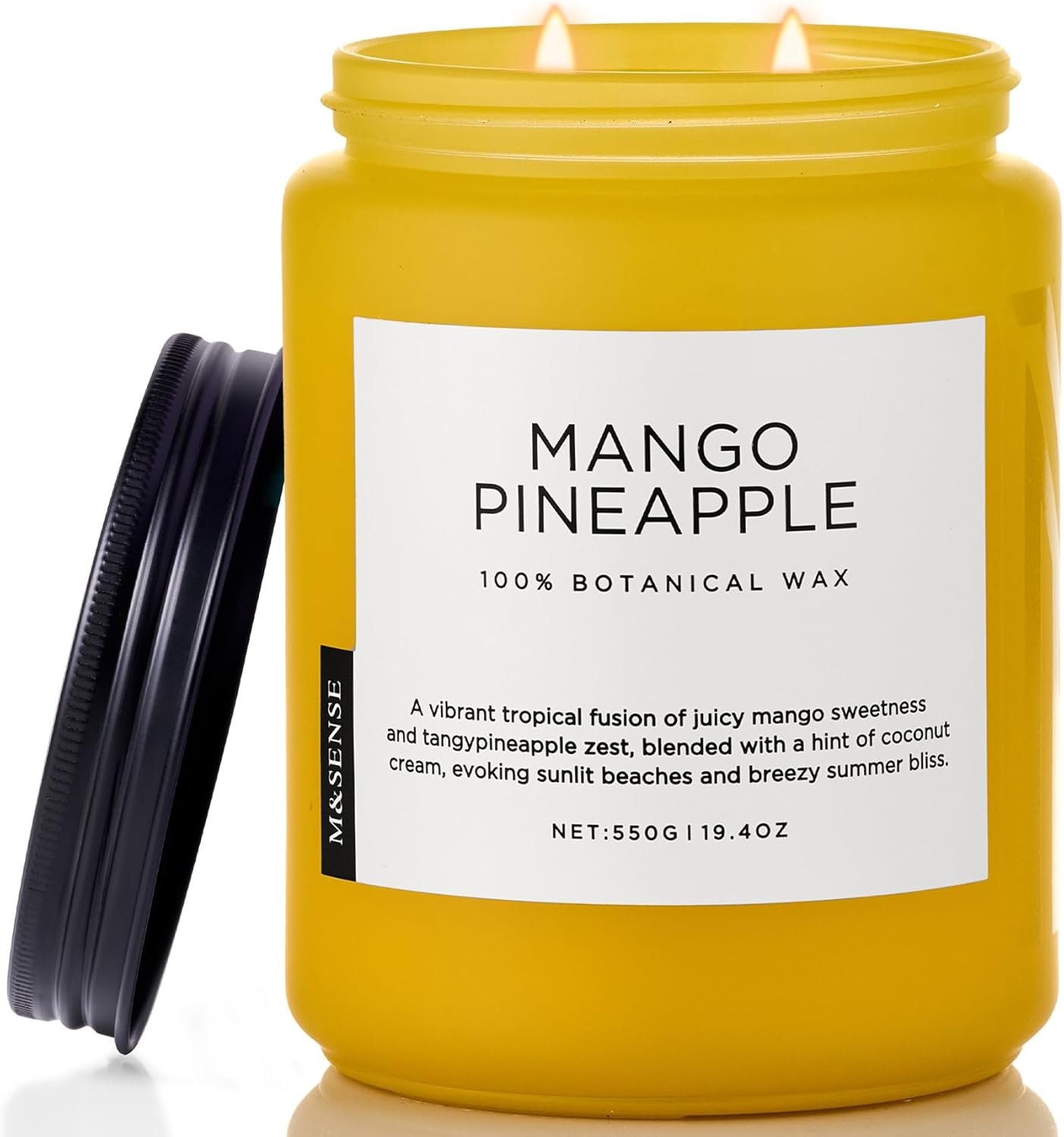M&SENSE Mango Pineapple Tropical Scented Candle, 19.4oz Non Toxic Natural Soy Wa…