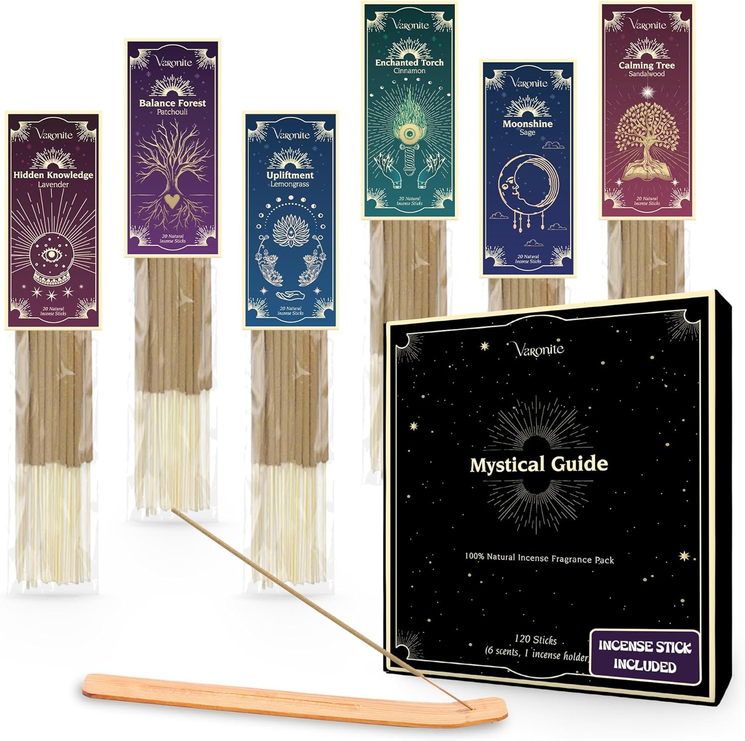 Mystical Guide Incense Sticks Variety Pack of 6 (120 Insence-sticks) with Holder…