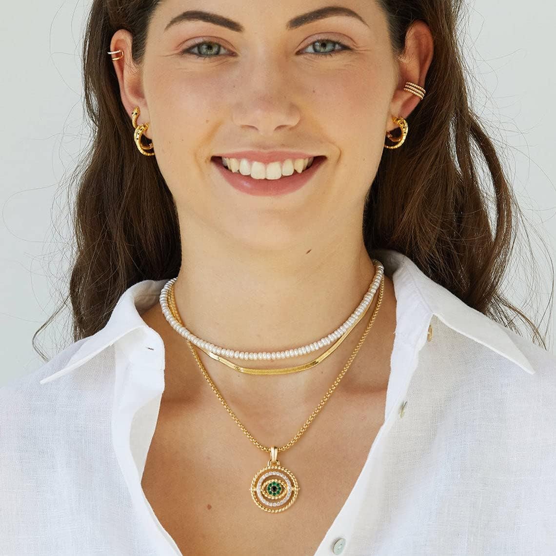 NUZON 2-Tone Interlocking | Sunburst Heart | CZ Evil Eye | Single Pearl | Love H…