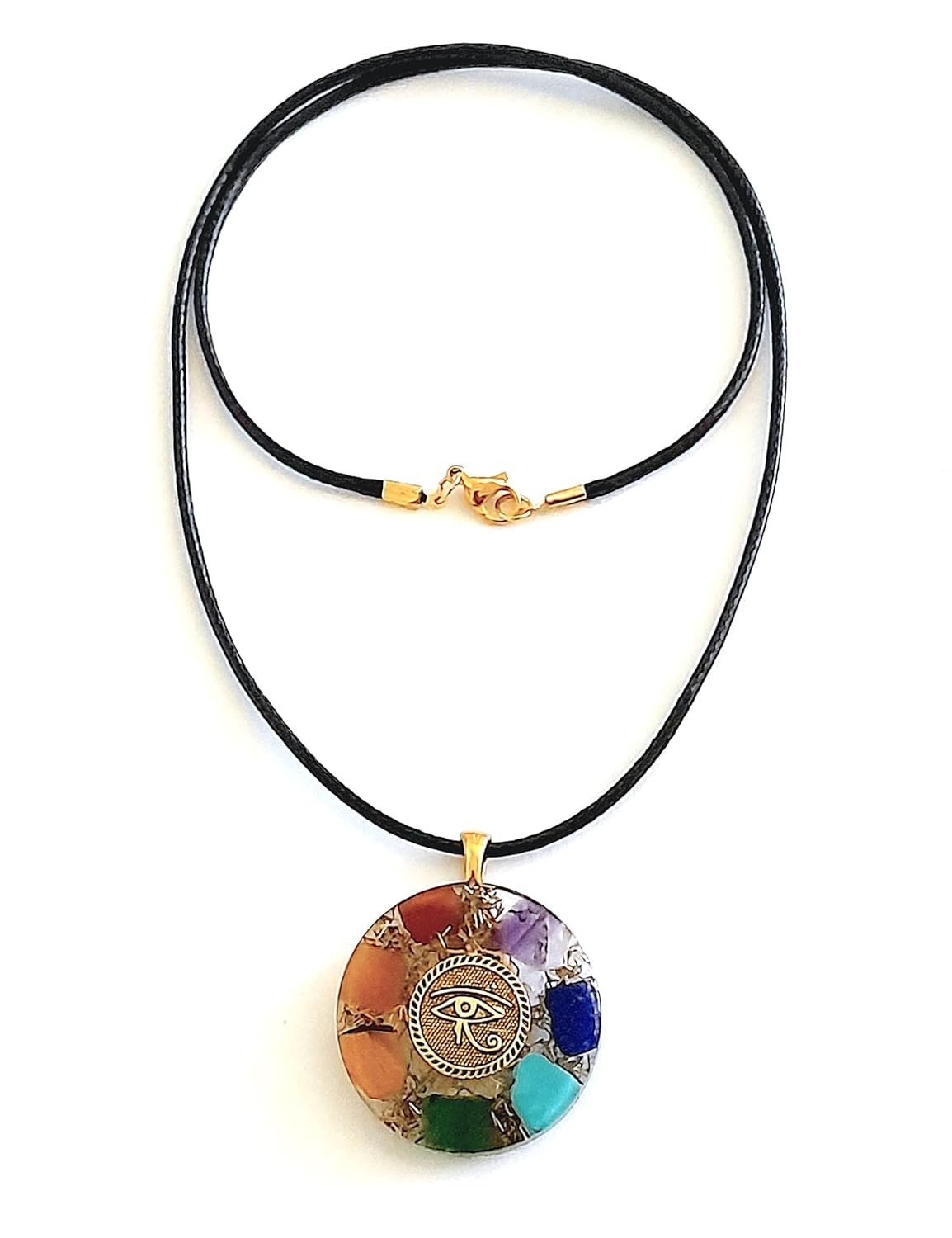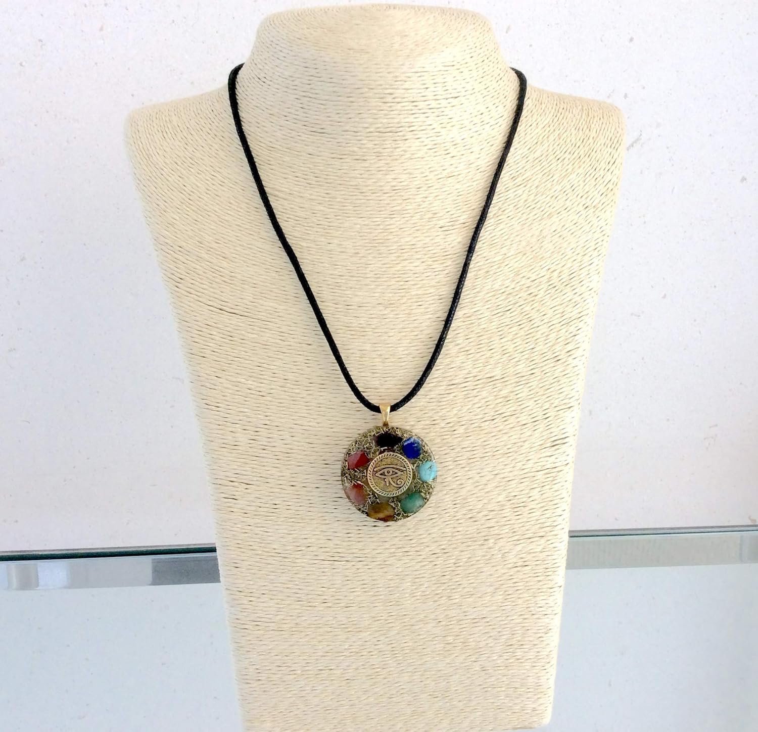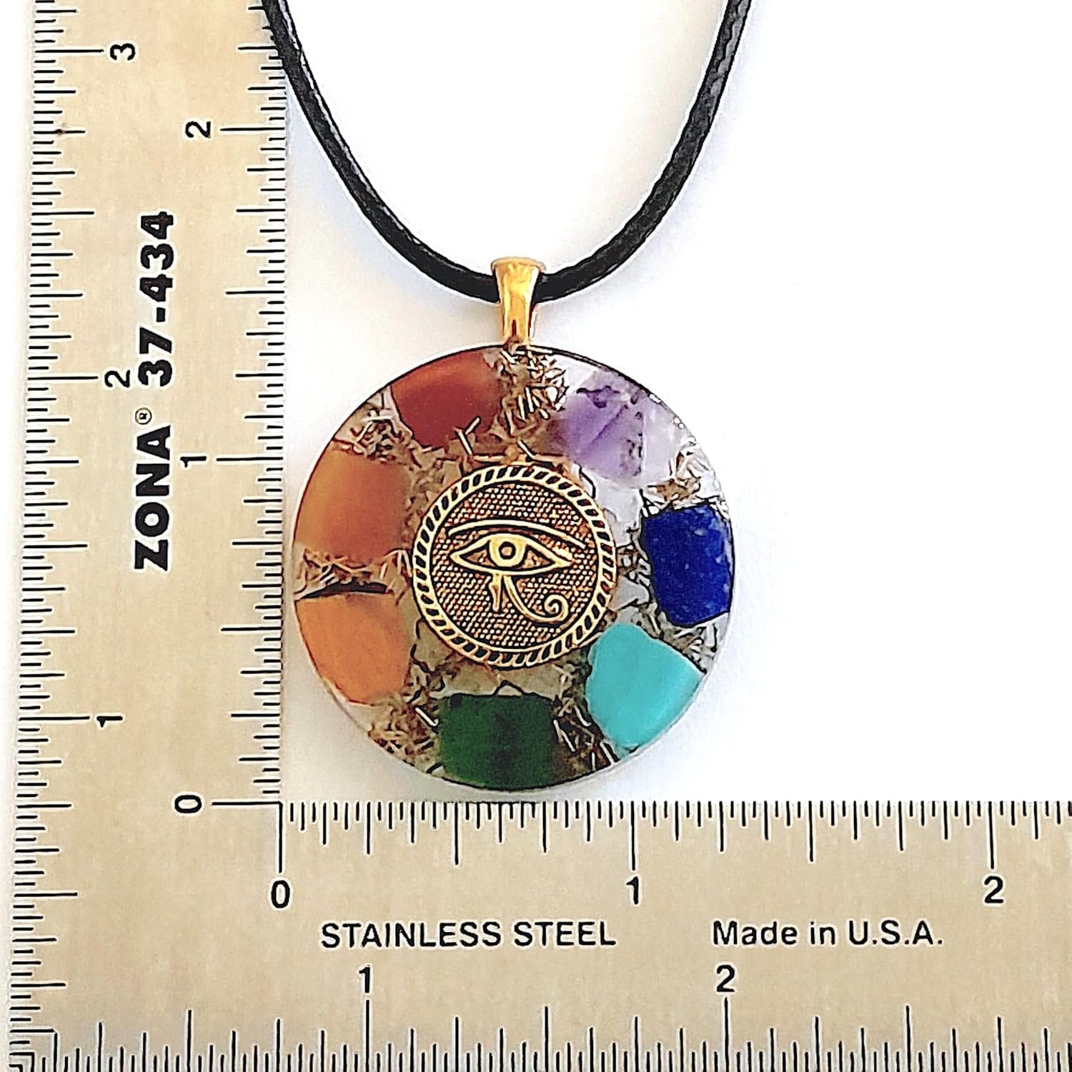 Orgonite pendant with golden Eye of Horus and natural Seven Chakra stones. Egypt…