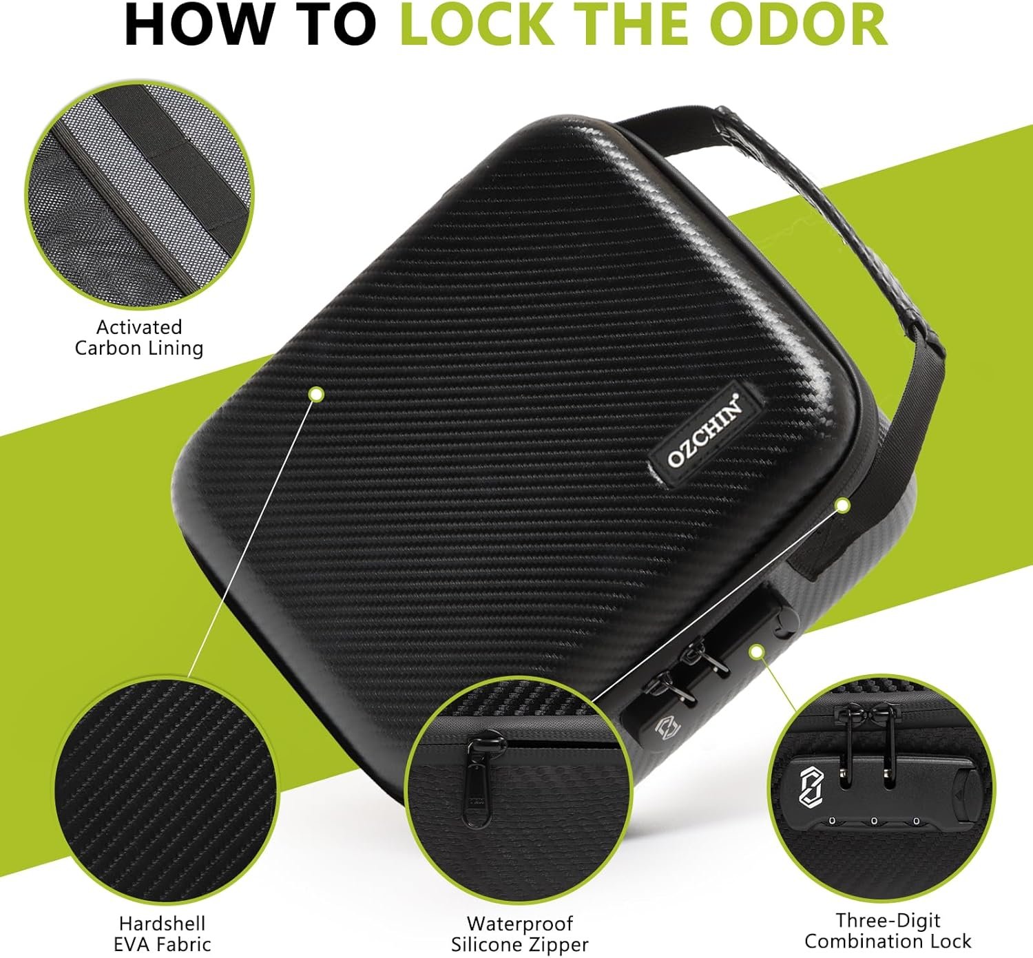 Smell Proof EVA Hard Case: The OZCHIN hard-shell smell-proof case features a durable aluminum foil lining and 3 removable activated carbon dividers that lock in odors while protecting your belongings from moderate impacts, ensuring your bag stays odor-free and secure