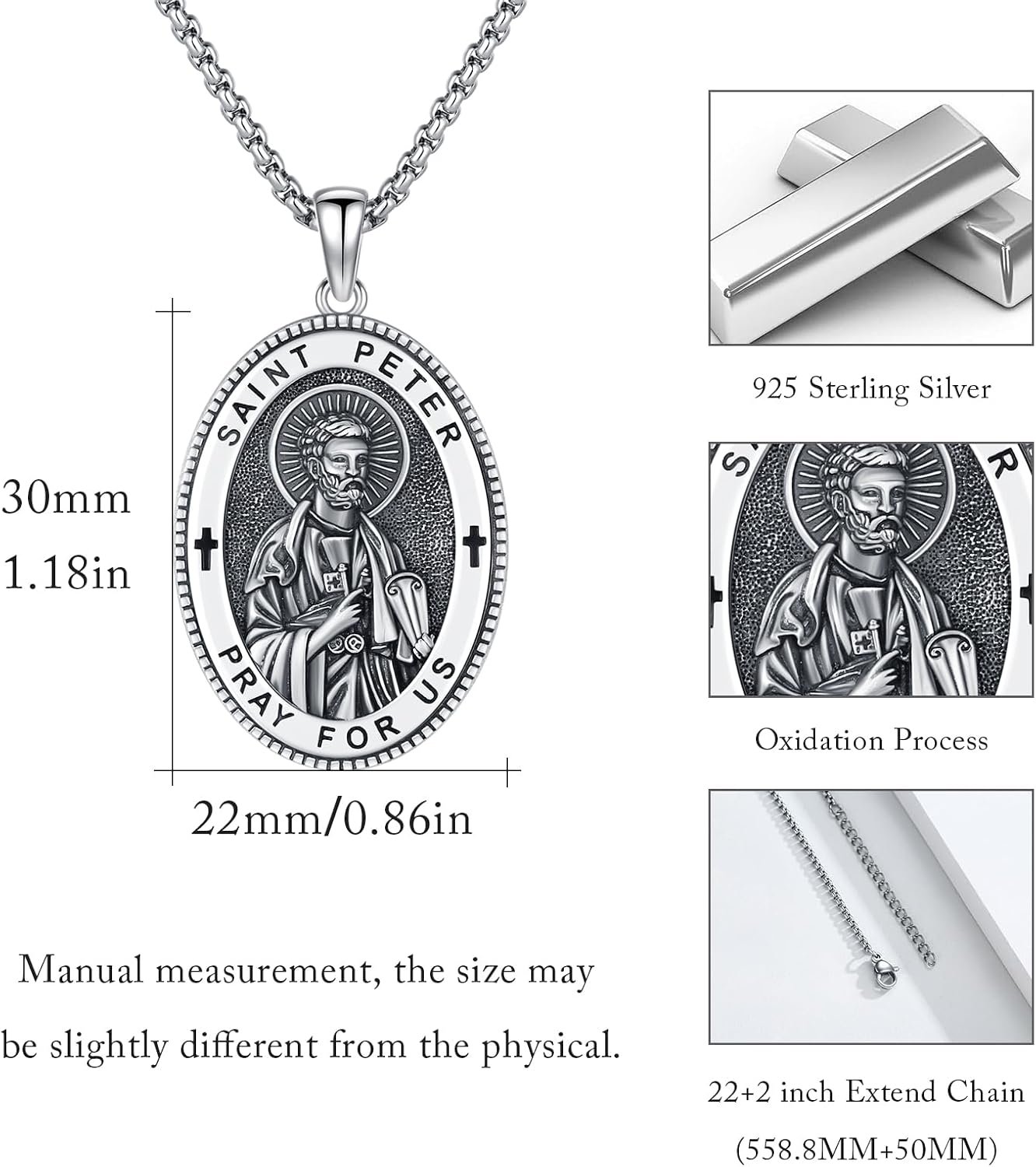 Patron Saint Necklace 925 Sterling Silver Amulet Necklace Religious Jewelry for …