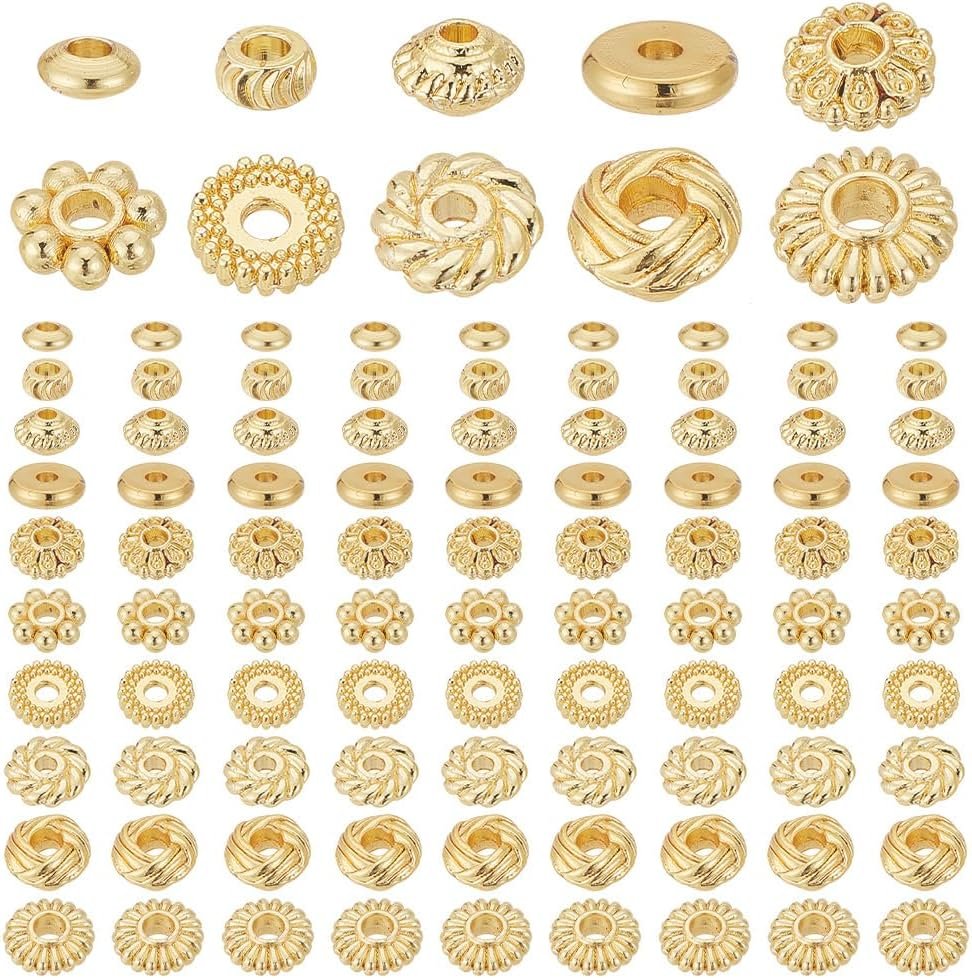PH PandaHall 100pcs 18K Gold Spacer Beads 10 Styles Metal Beads Flat Round Gold …