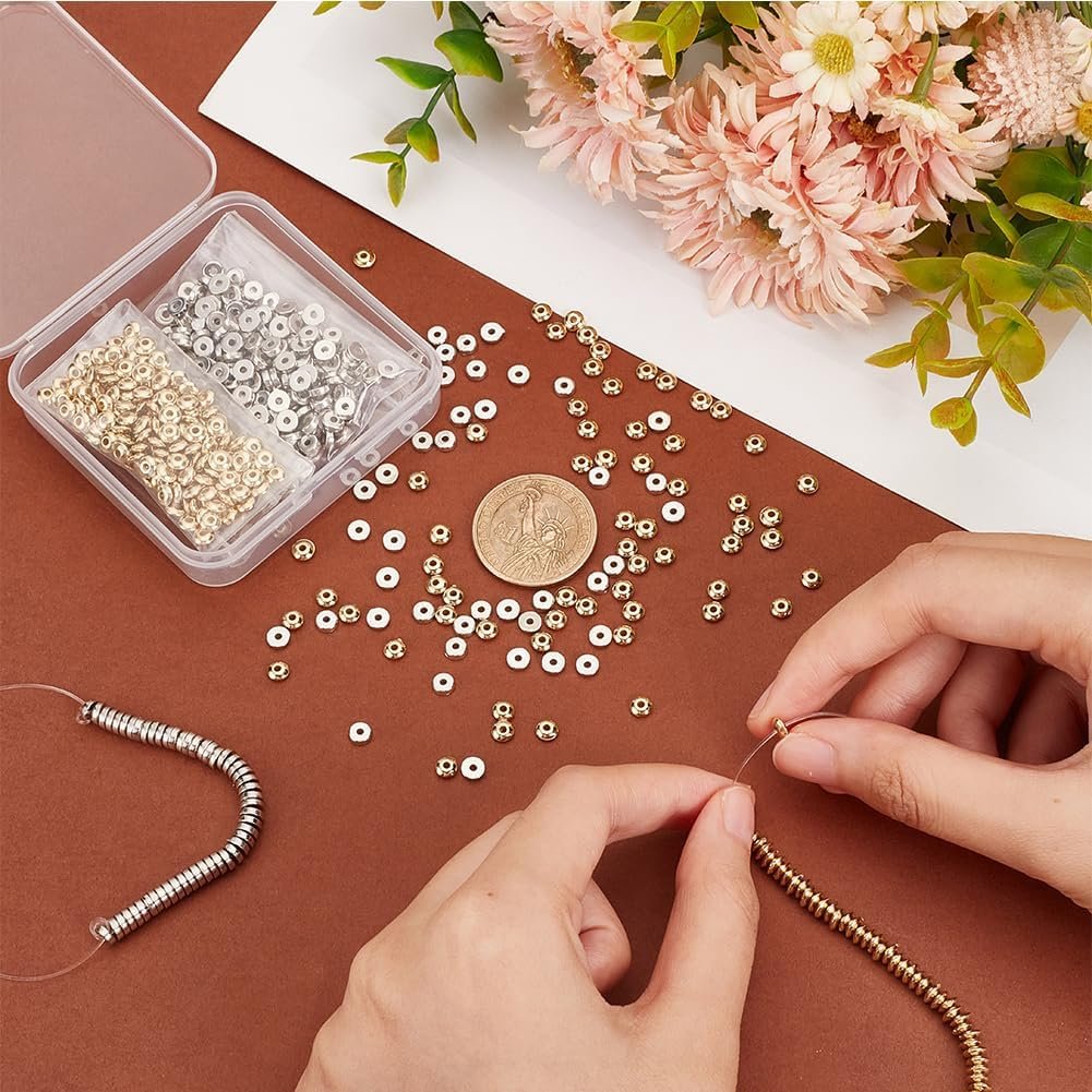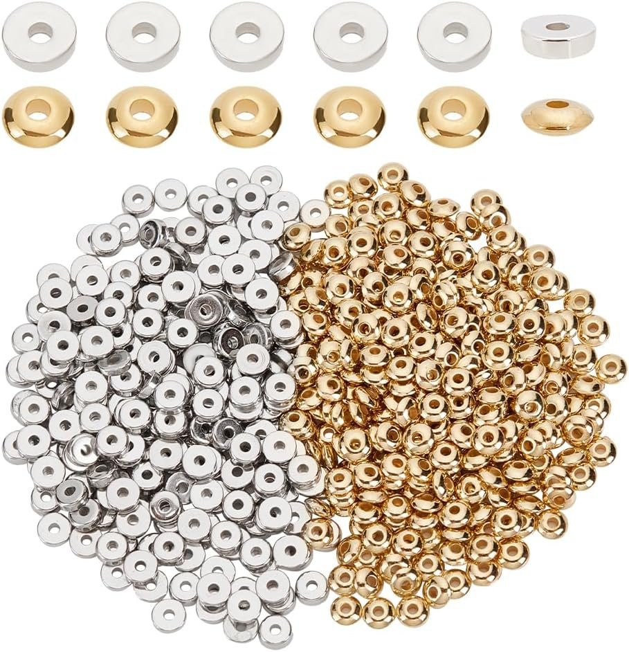 2 Colors Flat Beads: Gold and platinum color, 300pcs each color, 600pcs spacers totally, can match your different craft needs, these round metal spacer charms beads surface are smooth to touch.