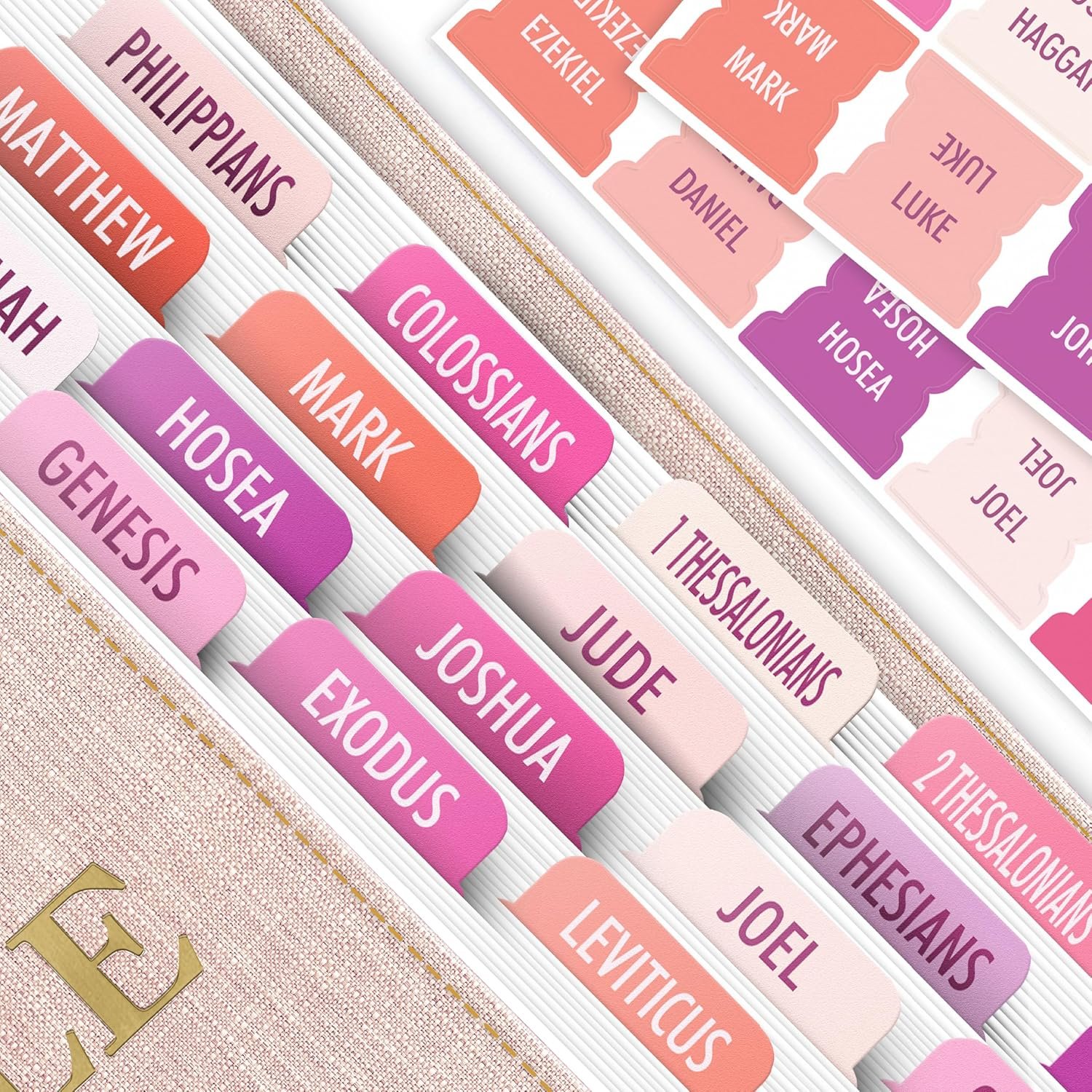 The tabs are pre-printed with the exact Bible book names (Genesis to Revelation), and you’re free to place them in your preferred layout using the included placement guide. Some people go traditional; others sort them by themes or testament.