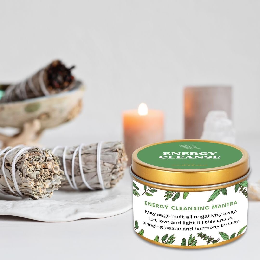 Premium Sage Candle with Energy Cleansing Mantra – Natural Soy Wax, Cotton Wick,…