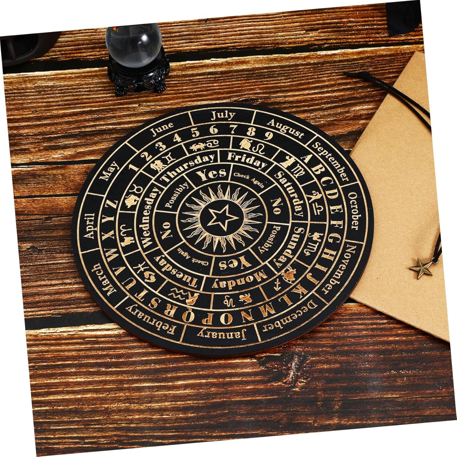 Meticulous craftsmanship: made from wood, this pendulum board is meticulously crafted to provide durability and a smooth, polished finish,pendulum answer board,Witch Divination Board