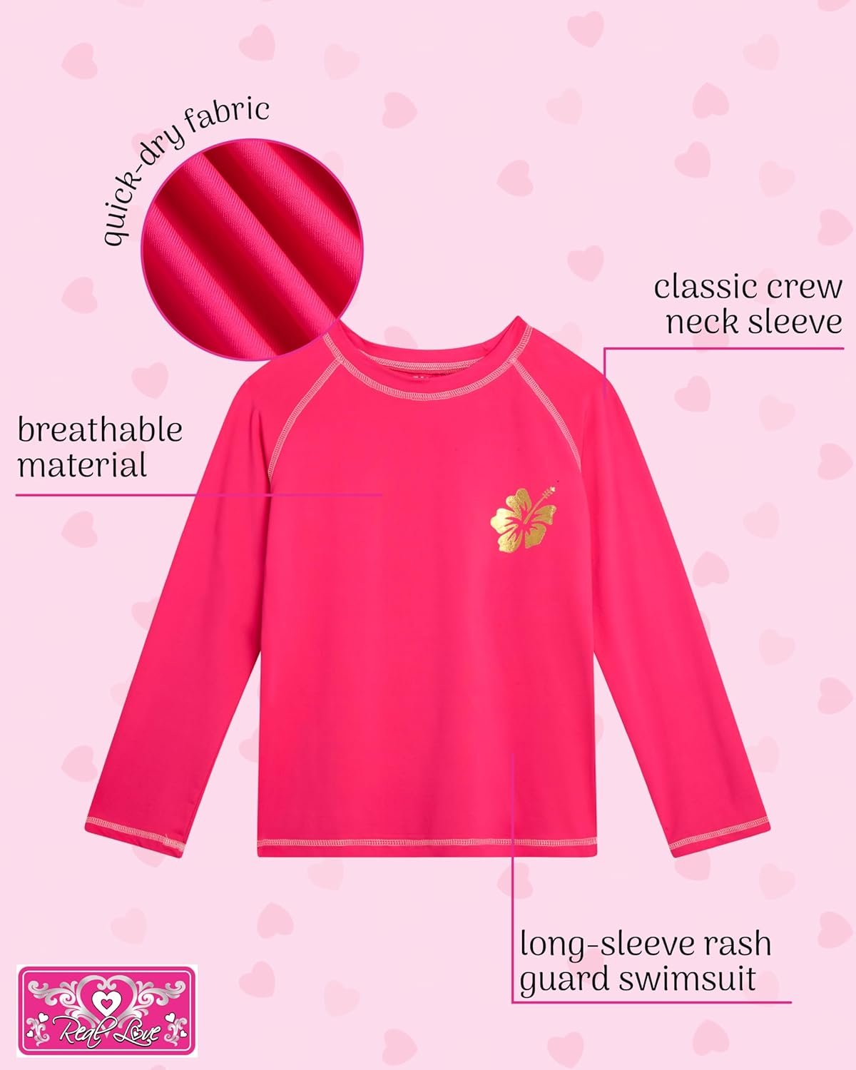 Real Love Girls Rash Guard Shirt – Quick Dry Crew Neck Long Sleeve Sun Protectio…