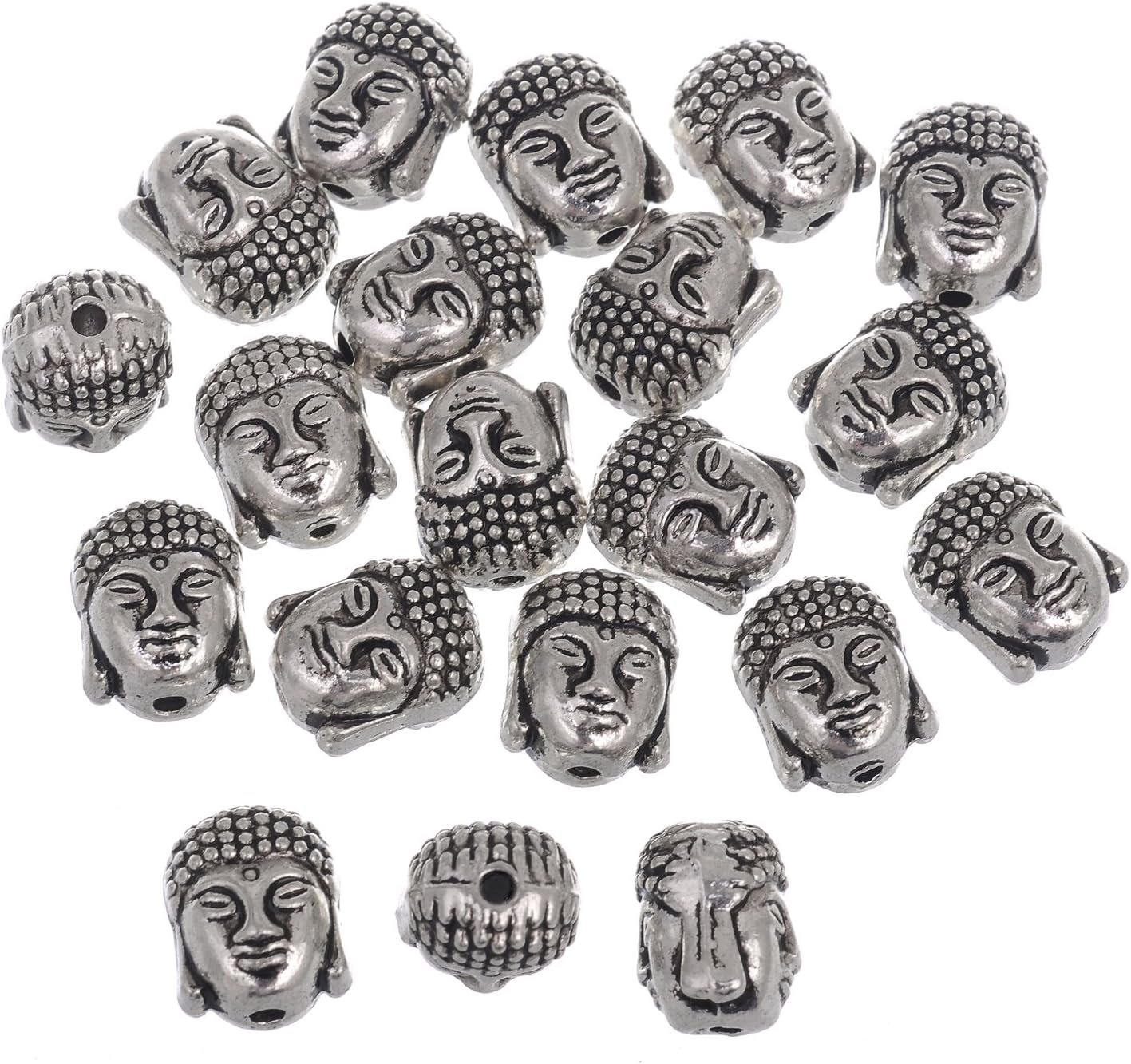 RUBYCA 40PCS Buddha Small Spiritual Metal Beads Silver Color Spacer for Jewelry …
