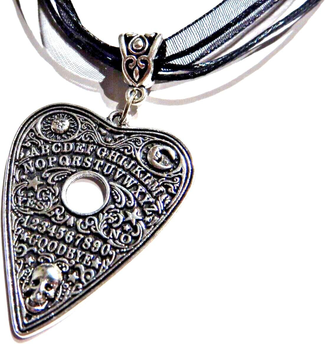 Silvertone Ouija Planchette Pendant on Organza Ribbon & Cord Choker gothic spiri…