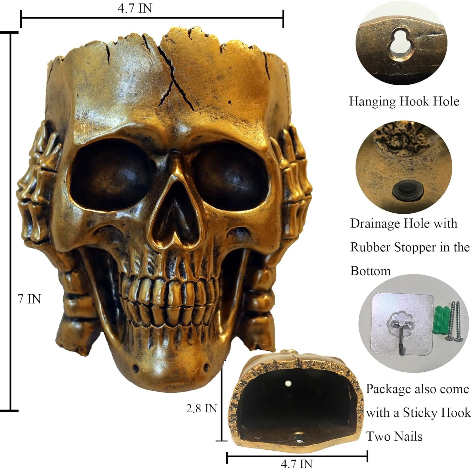 Skull Fence Planter for Outdoor Plants, Spooky Skull Wall Planters for Indoor Ou…