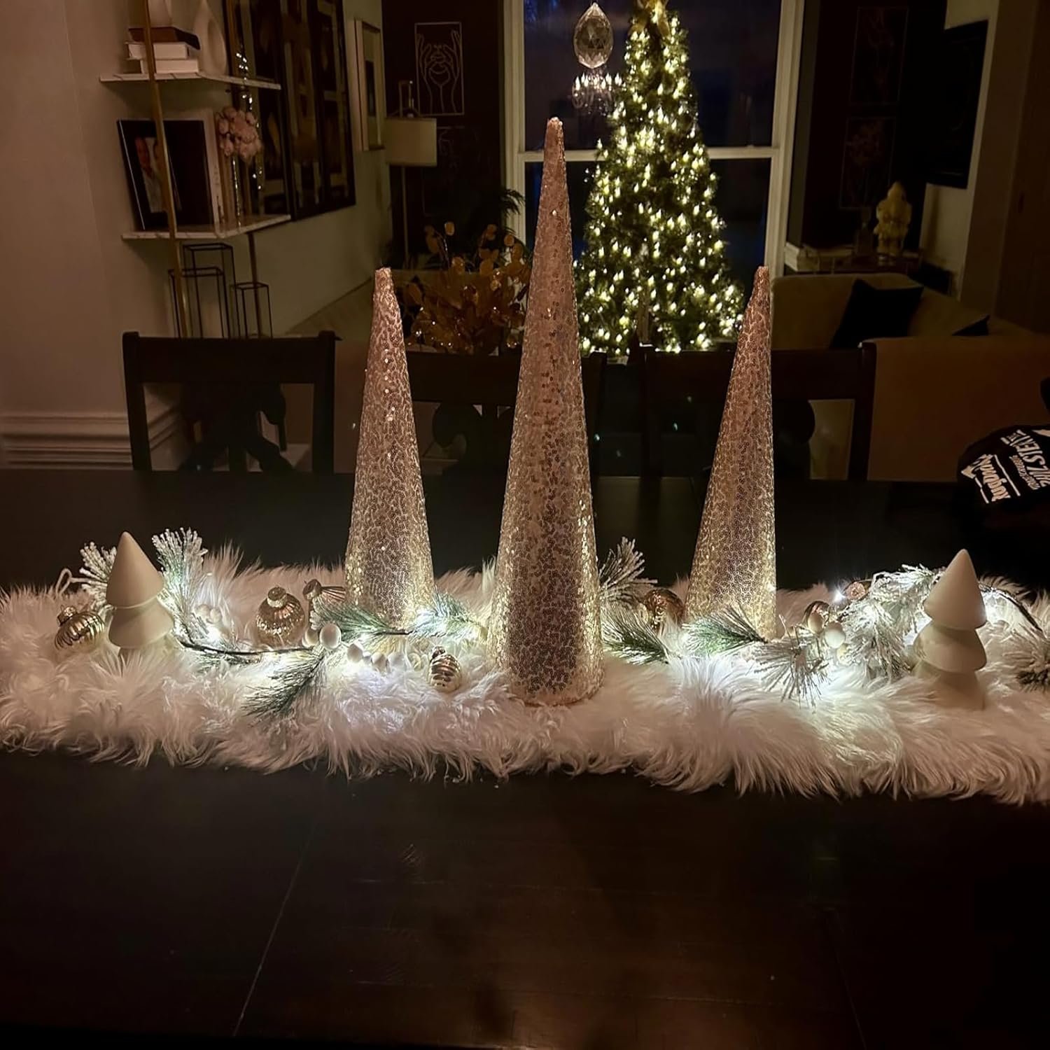 Customers find the table runner elegant, with one mentioning it adds extra pizazz to holiday decor. Moreover, they appreciate its quality, with one noting it’s very thick, and its softness, with one describing it as fluffy. Additionally, customers like its touch, with one saying it adds a magical touch to the table, and they consider it good value for money, noting it looks expensive.