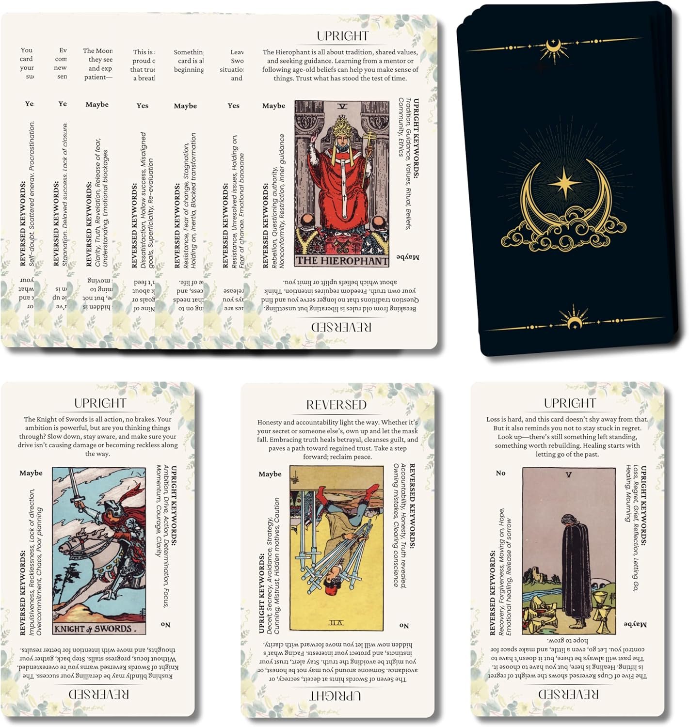 NO-NONSENSE LEARNING: Designed with tarot cards for beginners in mind—each card has upright and reversed keywords, plus quick yes/no indicators for effortless interpretation.